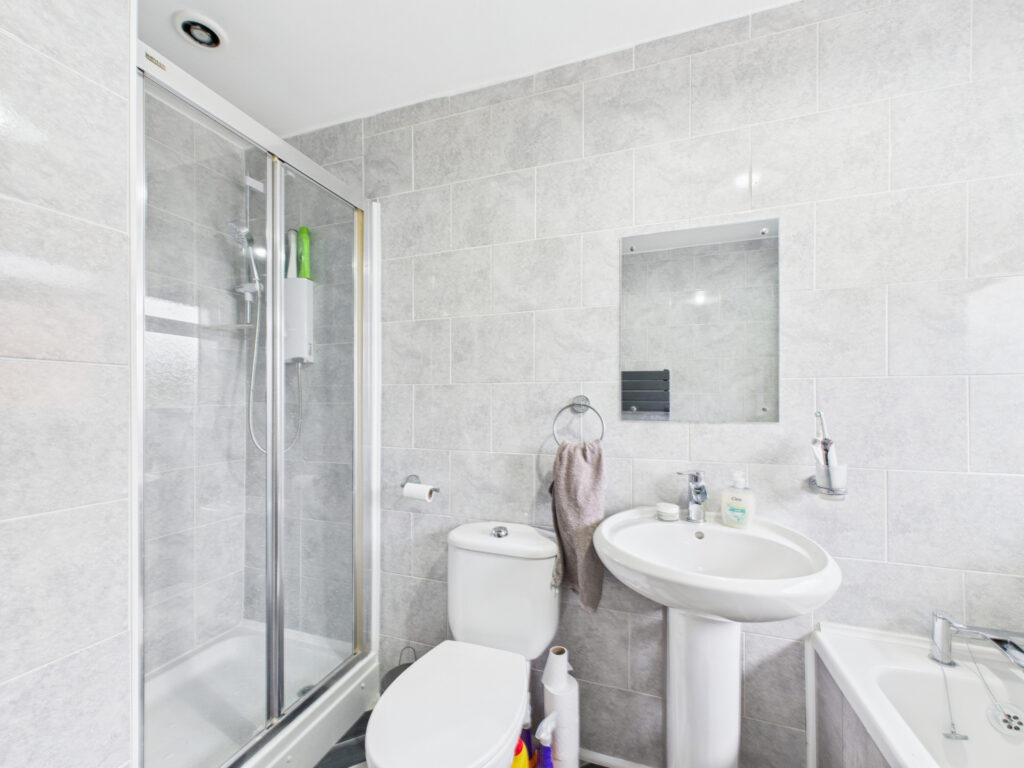 To the first floor, the property offers two well-proportioned double bedrooms, both benefiting from fitted storage, along with a further single bedroom. A modern four-piece family bathroom suite completes the upper-floor accommodation.