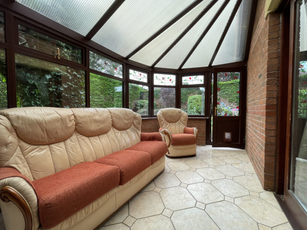 The property offers generous and versatile living accommodation, including a spacious lounge, a separate dining room, and a bright conservatory that opens onto the private rear garden. The fitted kitchen provides ample storage and worktop space, while a downstairs WC adds further convenience. Upstairs, there are two well-proportioned double bedrooms with both offering en suite bathrooms. While the property has been well cared for, certain rooms may benefit from modernisation, offering a fantastic opportunity to update and personalise to your own style and needs.