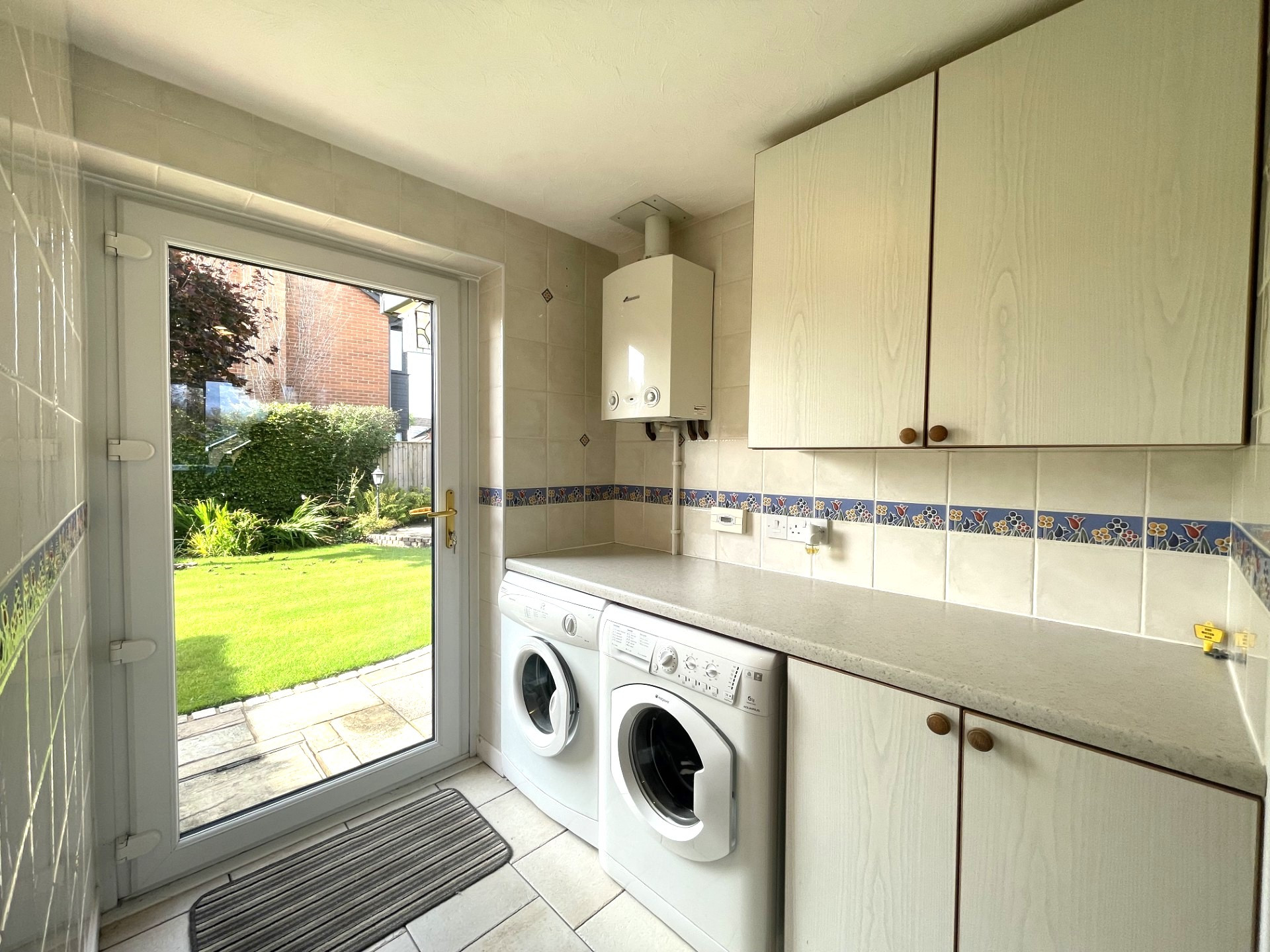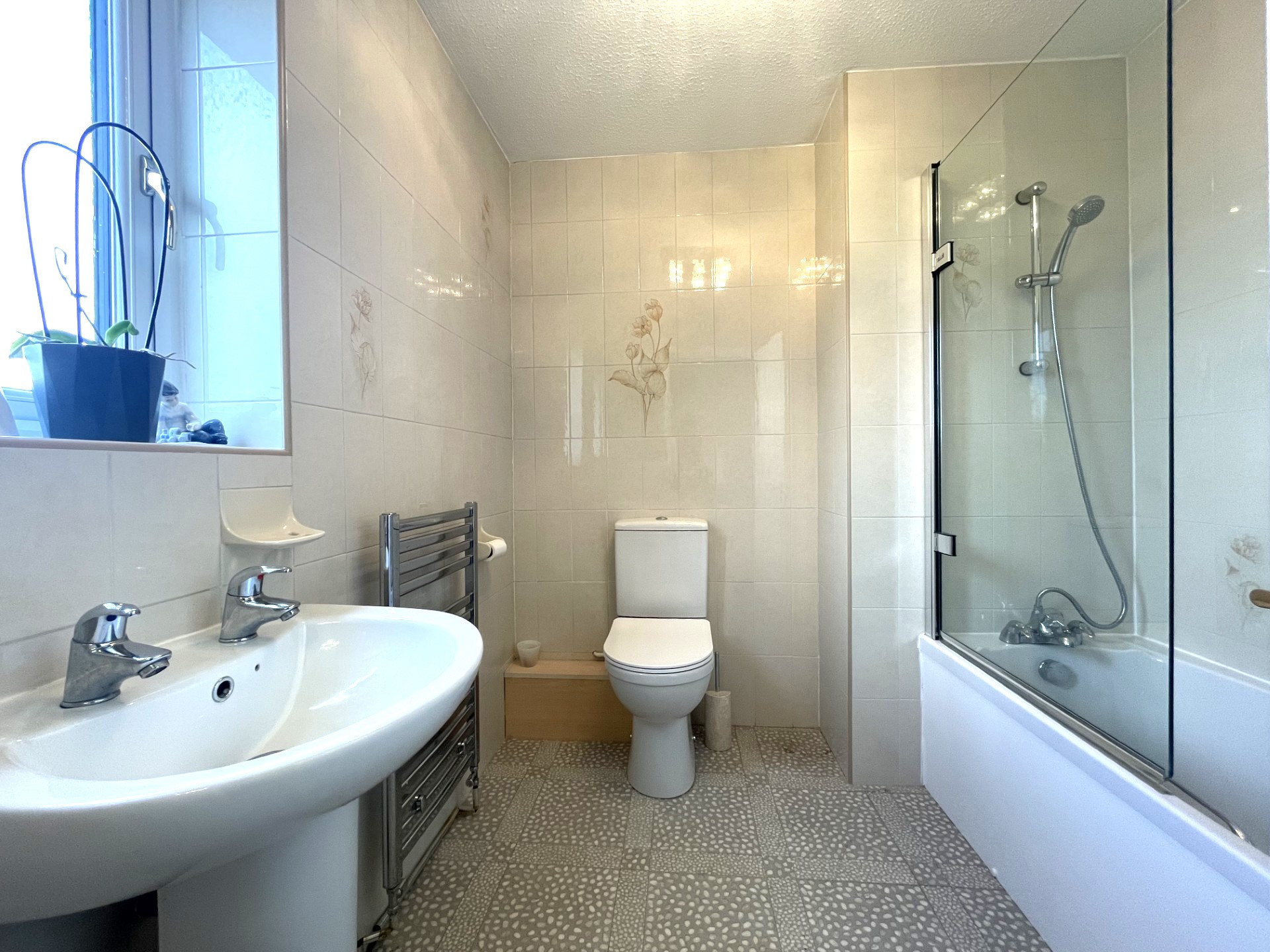 A useful utility room connects the main house to the garage, offering additional storage and laundry space as well as convenient internal access. Upstairs, there are two generous double bedrooms and a well-proportioned single bedroom. The principal bedroom benefits from a private en-suite shower room, while a contemporary family bathroom serves the remaining bedrooms.