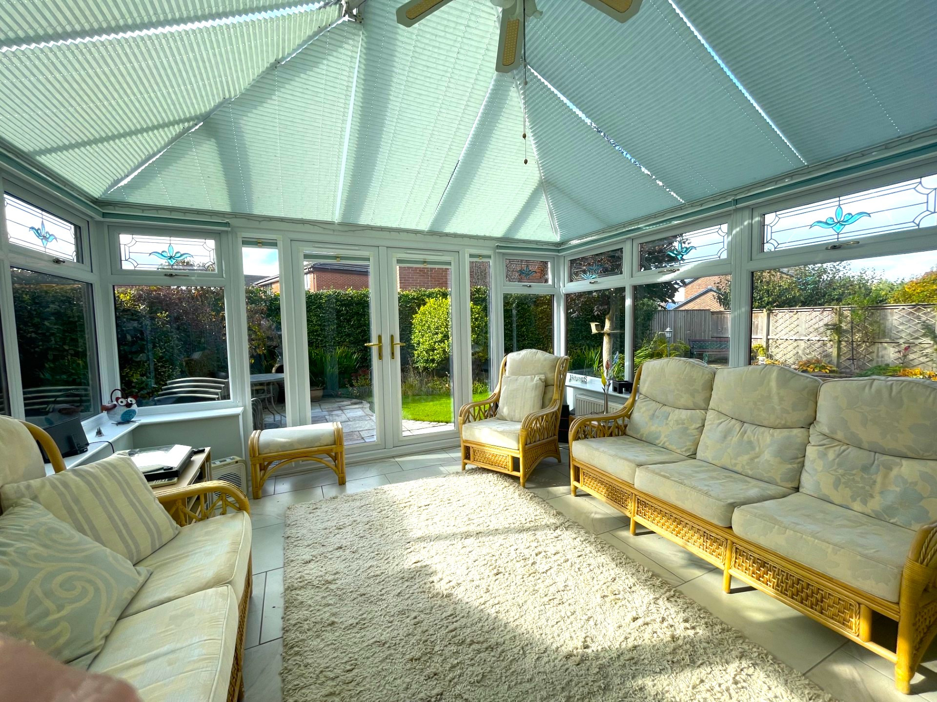 The welcoming entrance hallway leads into a bright and spacious lounge filled with natural light. The modern fitted kitchen features sleek Silestone granite worktops and a well-designed layout that opens into a generous dining area, ideal for family meals and entertaining. A conservatory to the rear provides a peaceful spot to relax while enjoying views of the garden, with doors opening directly onto the patio.