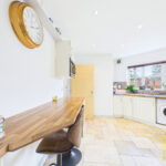- Stylish modern kitchen with integrated appliances and breakfast bar