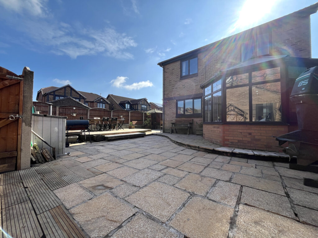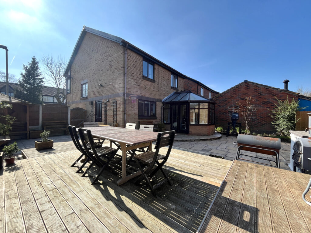 Outside, the large flagged rear garden provides the perfect space for outdoor entertaining, with a decked seating area in the corner, ideal for summer evenings. The fenced perimeter ensures privacy, making this a safe and secure space for children and pets to enjoy.