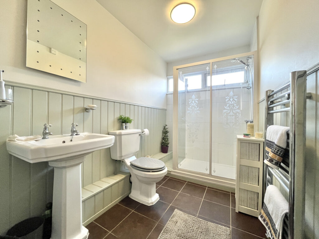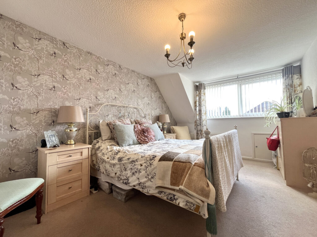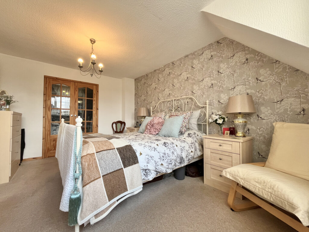 Accommodation is thoughtfully arranged with two well-proportioned bedrooms on the first floor. The main bedroom benefits from a walk-in wardrobe, offering a private dressing area, while the second bedroom features fitted wardrobes, maximizing storage solutions.