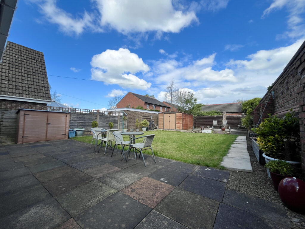 Externally, the property is complemented by a large driveway providing ample off-road parking, leading to a detached garage. The rear garden is a standout feature, beautifully landscaped to offer a tranquil retreat for relaxation and outdoor entertaining.
