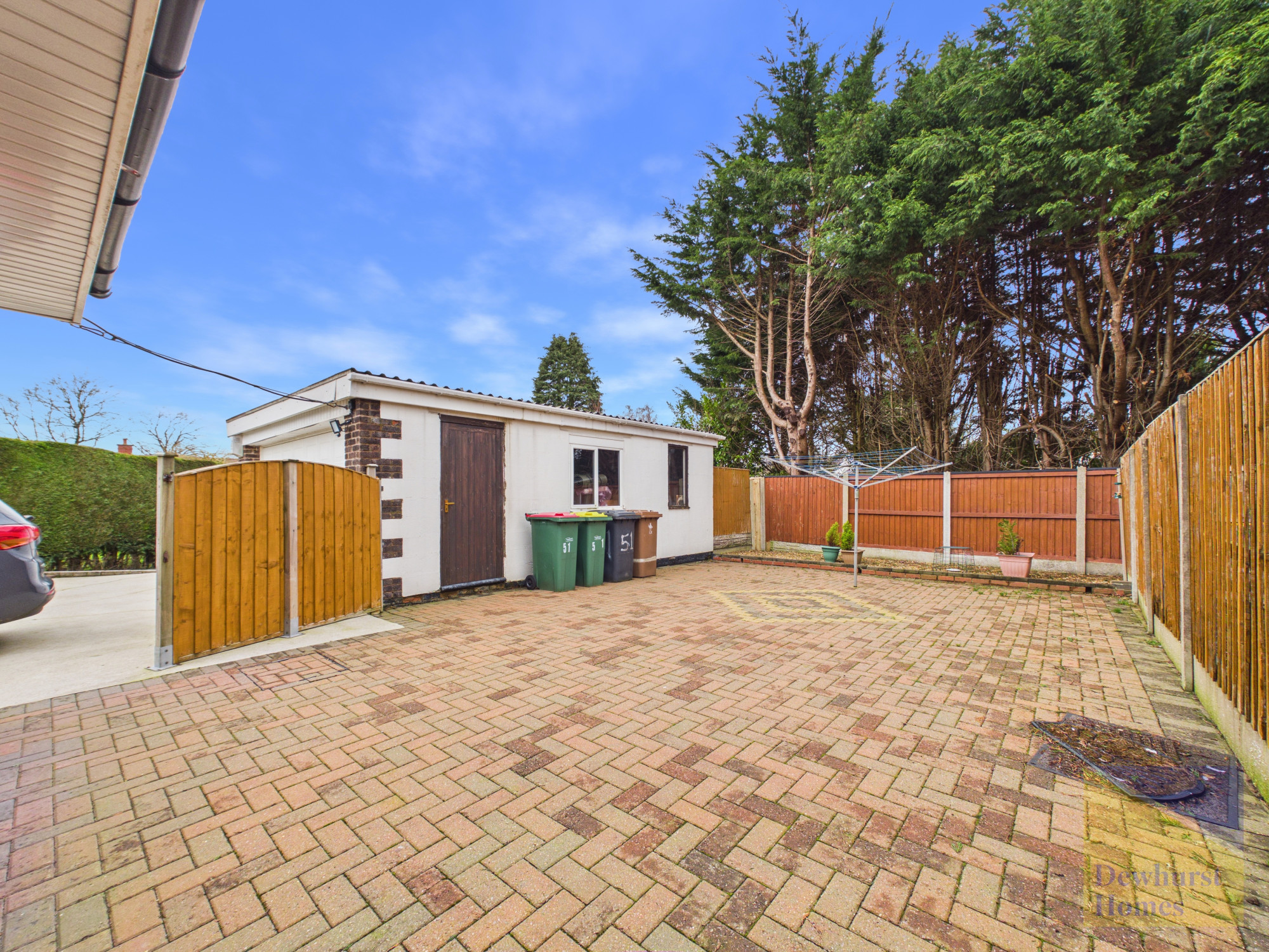 Externally, the property truly stands out. The rear garden is not overlooked, providing a good degree of privacy, and has been designed for low maintenance with block paving throughout. The substantial corner plot also accommodates a double detached garage with power, offering excellent storage, workshop potential or secure parking, alongside ample outdoor space.