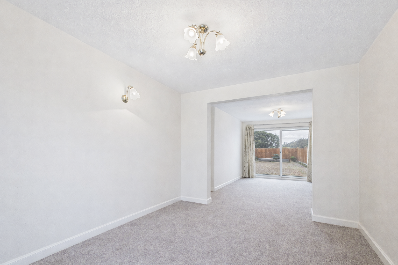 The accommodation begins with a spacious entrance hallway leading through to a bright and airy open-plan lounge and dining room. This welcoming living space is enhanced by patio doors that open directly onto the rear garden, creating a seamless flow for both everyday living and entertaining. The kitchen is well positioned to the rear of the property and benefits from a convenient back door providing additional access to the garden.