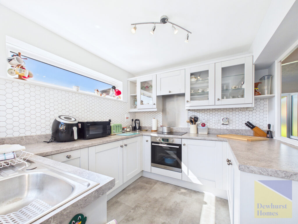 The newly fitted kitchen is finished to a high standard, complete with quality integrated appliances and a convenient rear access door leading out to the garden. The lounge is bright and versatile, benefiting from a bay window and ample space to accommodate both living and dining areas.