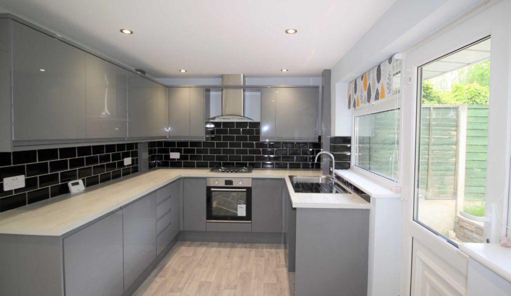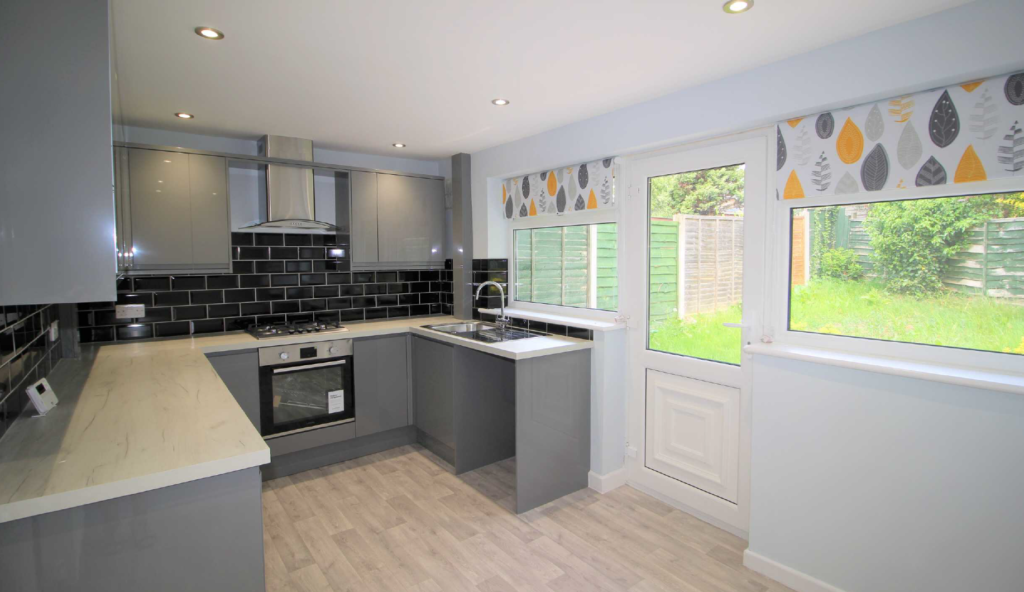 Upon entering the property, there is a bright and airy with large windows allowing light to flood the room. The kitchen is accessed from the living room and features plenty of wall and base storage units with built in appliances, space for dining table and access to the rear garden.