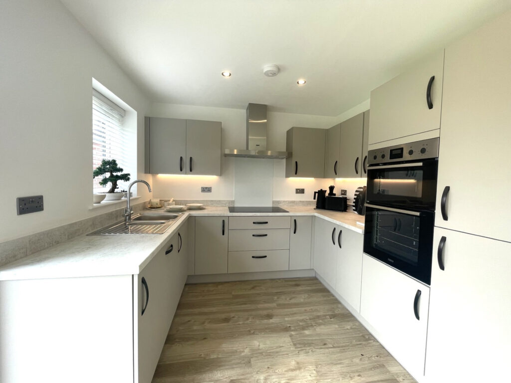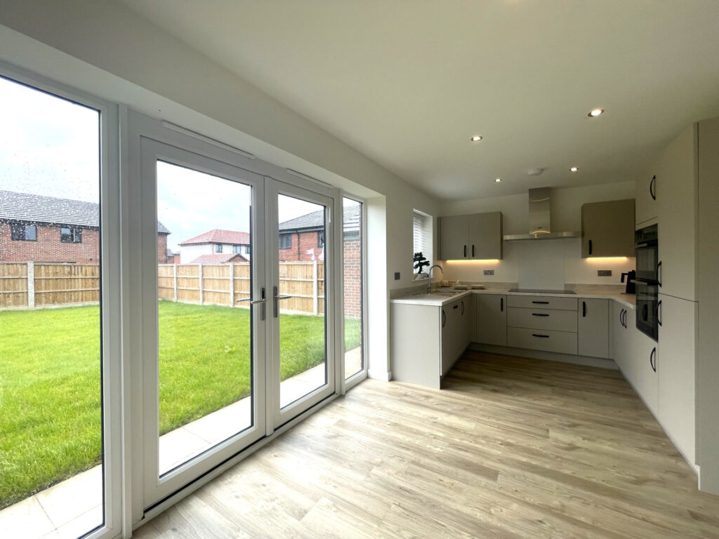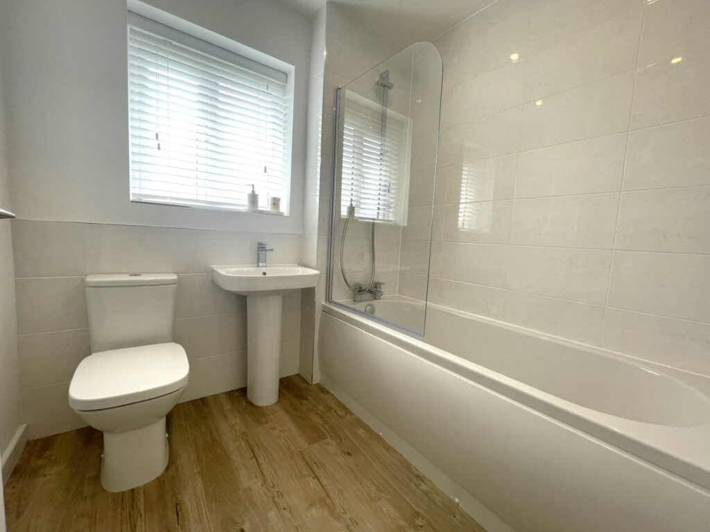 Upstairs, there are four generously sized bedrooms including a master with en-suite, alongside a sleek family bathroom, both fitted with modern spotlights. The property is finished in natural, neutral tones throughout, giving buyers a perfect blank canvas to personalise.