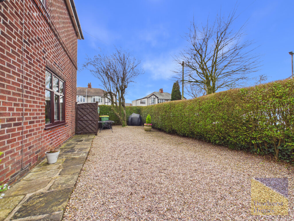 The property is approached via a gated entrance leading to a private courtyard parking area and a garage fitted with an electric door, offering both security and convenience. Extensive, well-established gardens wrap around the home, creating a wonderful sense of space and privacy while enhancing its striking kerb appeal.