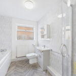 The property offers two generously sized double bedrooms, both well-presented and versatile. The modern four-piece bathroom suite includes a vanity unit sink, additional storage cupboard, and quality fittings, providing both comfort and functionality. The loft is fully boarded for additional storage.