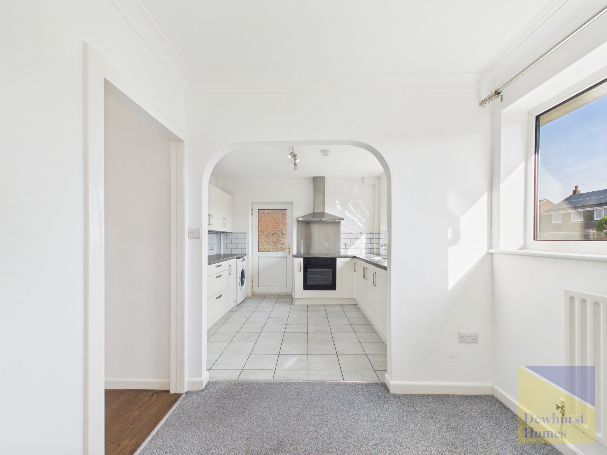 The newly fitted kitchen comes complete with white goods and features a stylish tiled floor, flowing seamlessly into a designated dining area which is comfortably carpetedβideal for both everyday living and entertaining.
