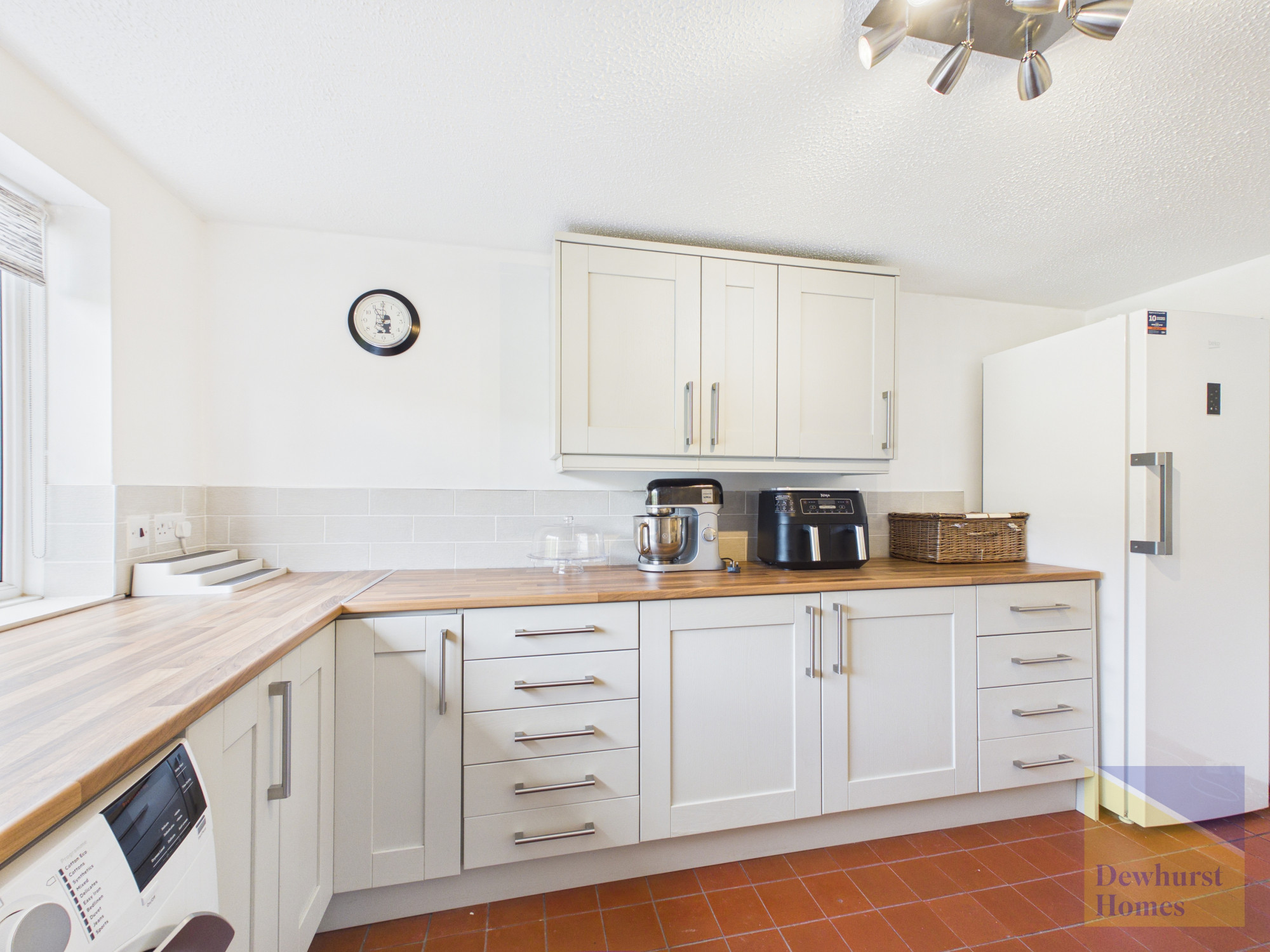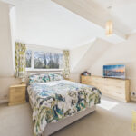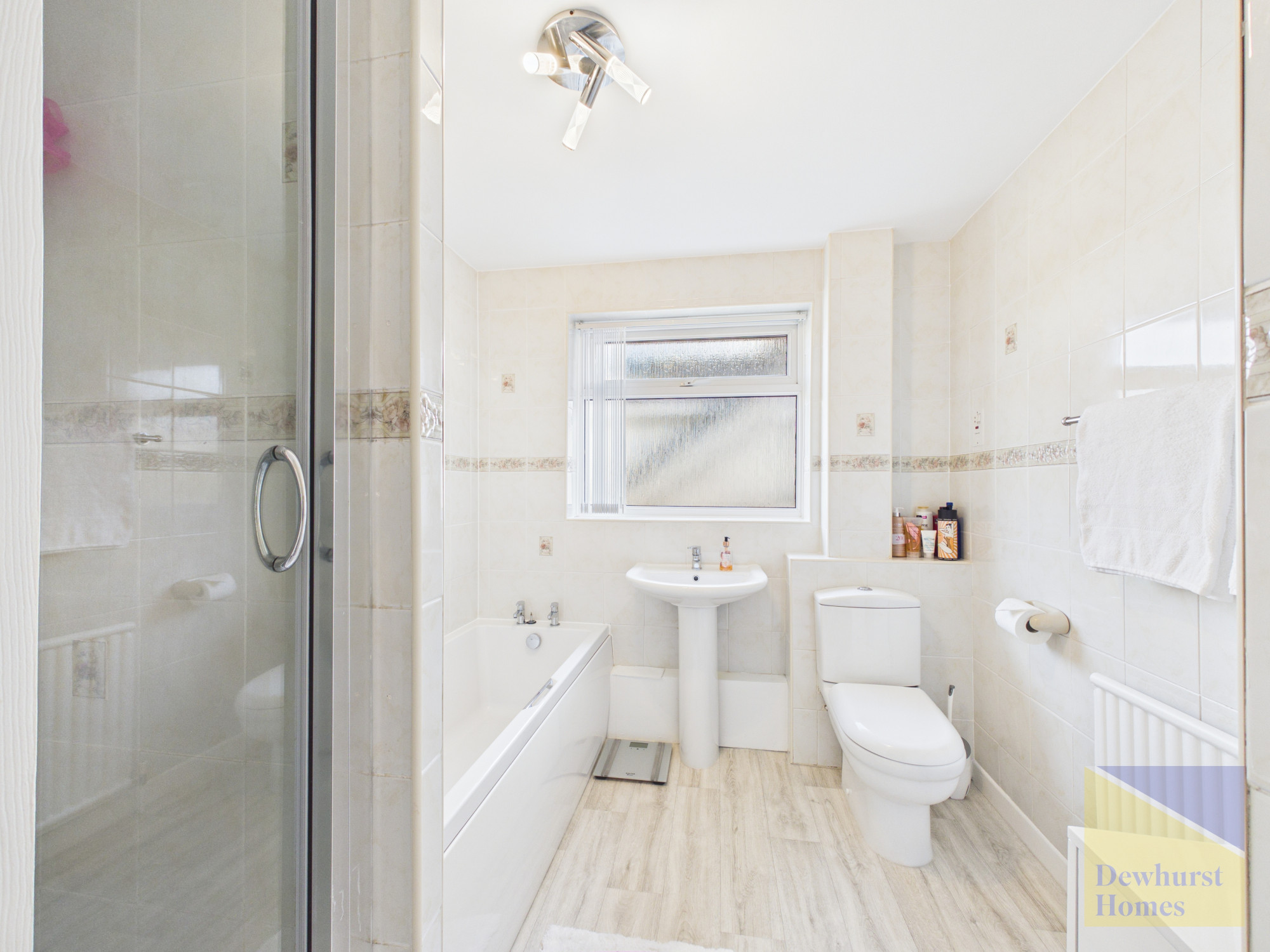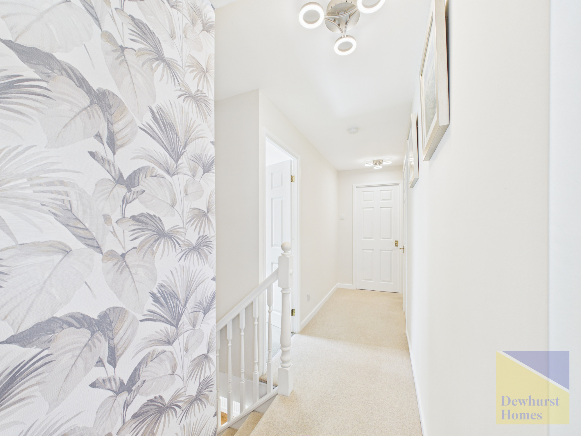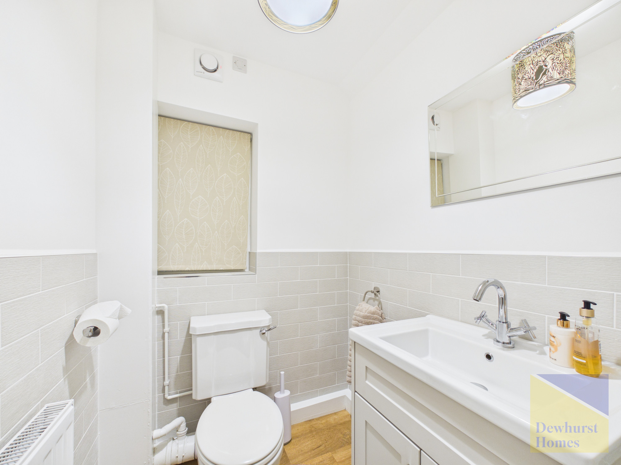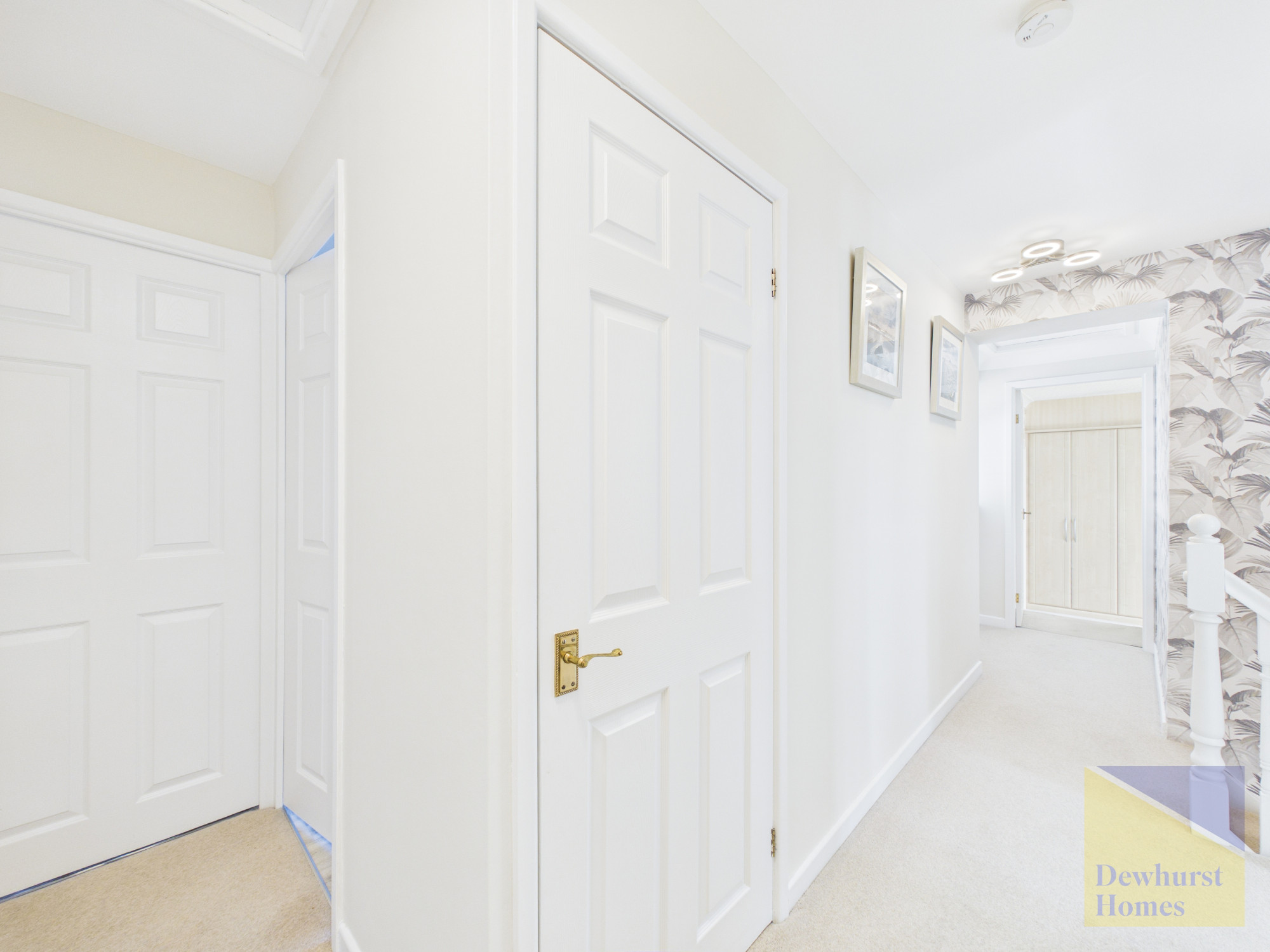 A spacious family four-piece bathroom serves the remaining bedrooms, while a large airing cupboard houses the condensing boiler. Additional benefits include two loft access points providing further storage.