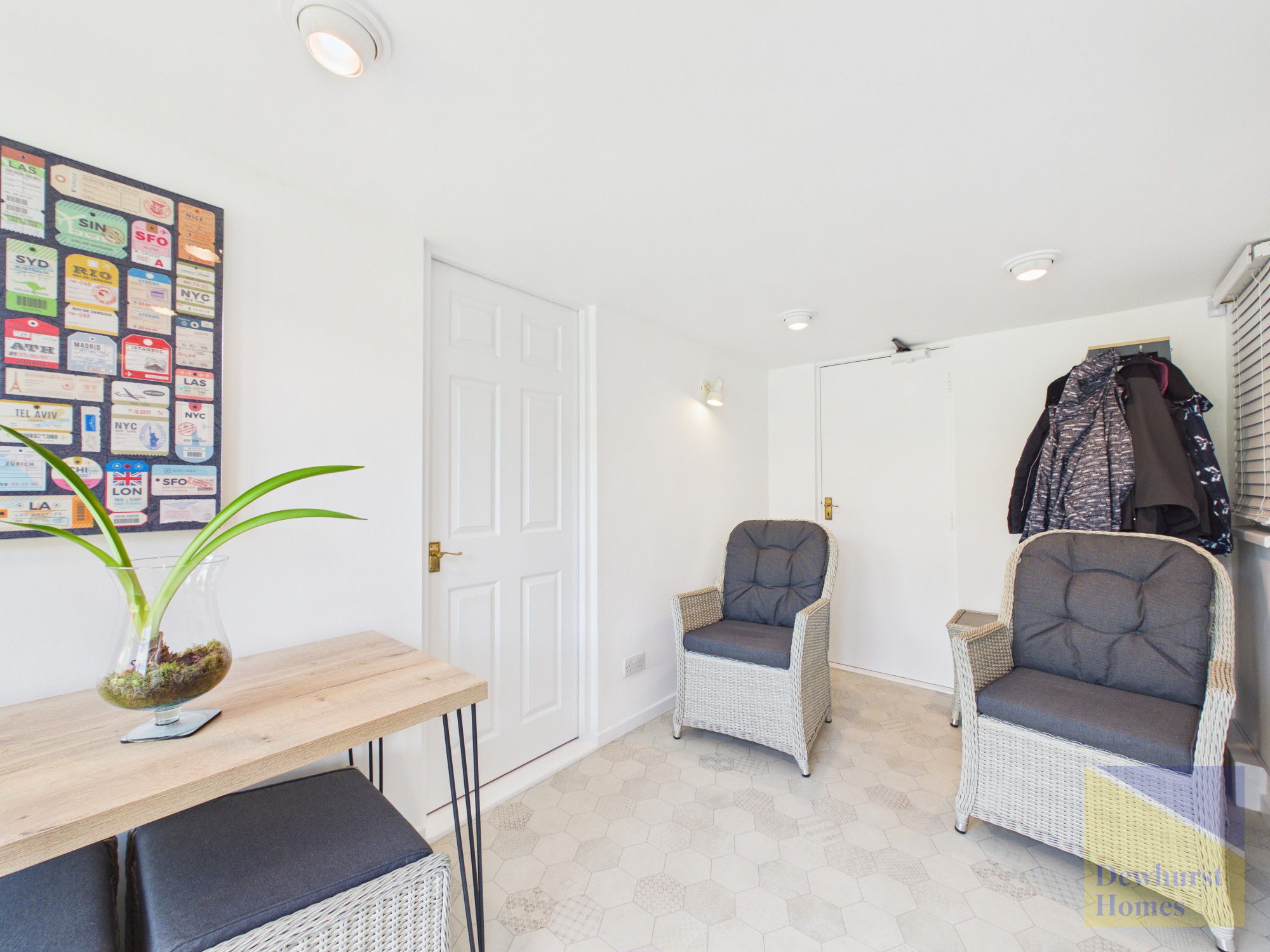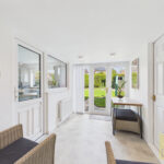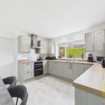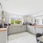 The impressive kitchen dining area forms the heart of the home, fitted with a range of high-quality appliances and an abundance of subtly styled sage green units, complemented by an induction hob and luxury vinyl flooring. Flowing from the kitchen is a versatile sunroom/breakfast area, ideal for additional seating or informal dining, enjoying views over the rear garden.