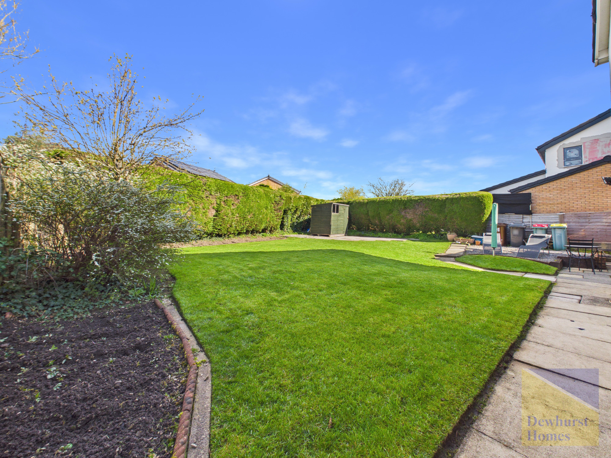 Externally, the rear garden is a superb size, enjoying sunshine throughout the day and featuring a lawned area, seating space, and garden shed—perfect for relaxing or entertaining. To the front, a driveway provides off-road parking for up to three vehicles.