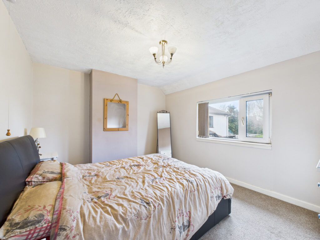 To the first floor, the property offers three well-proportioned bedrooms. The two main bedrooms are comfortable doubles, while the third bedroom enjoys pleasant views across the surrounding countryside. The family bathroom is modern and well-appointed, featuring a contemporary three-piece suite with shower over the bath and stylish tiled finishes.