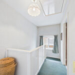 Upstairs, the property offers a generous landing, three good-sized double bedrooms and a well-proportioned single bedroom. The three-piece family shower room is fitted with a double shower, providing practical and stylish facilities for family living. Additional storage is available via the loft space.