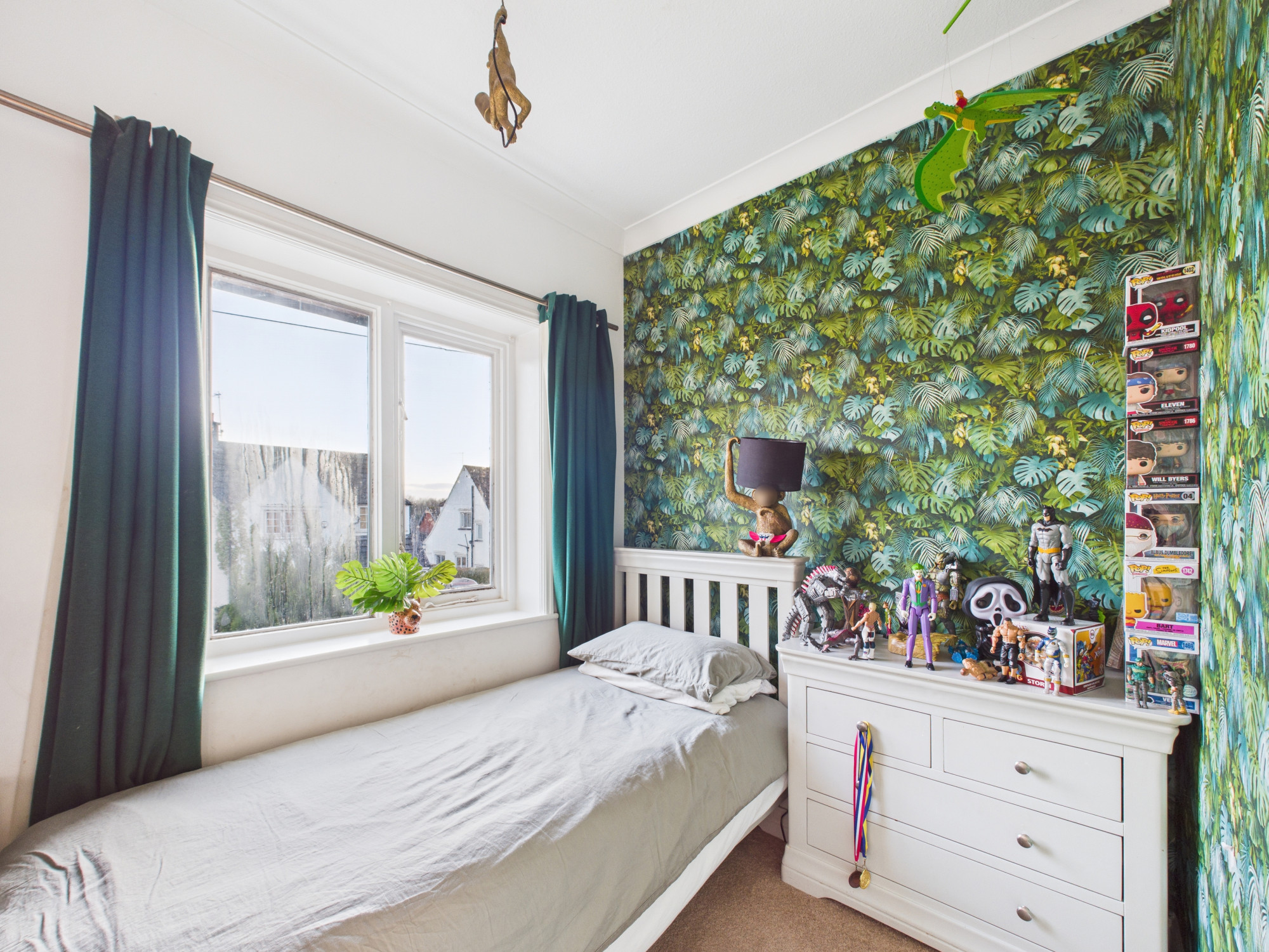 To the first floor, the property continues to impress. The main bedroom is an exceptionally large double, featuring extensive fitted wardrobes, a dressing table, and additional fitted furniture. The second bedroom is also a very spacious double, while the third is a generous single room. The family bathroom is well-appointed and features a four-piece suite, including a corner shower and a corner spa bath.