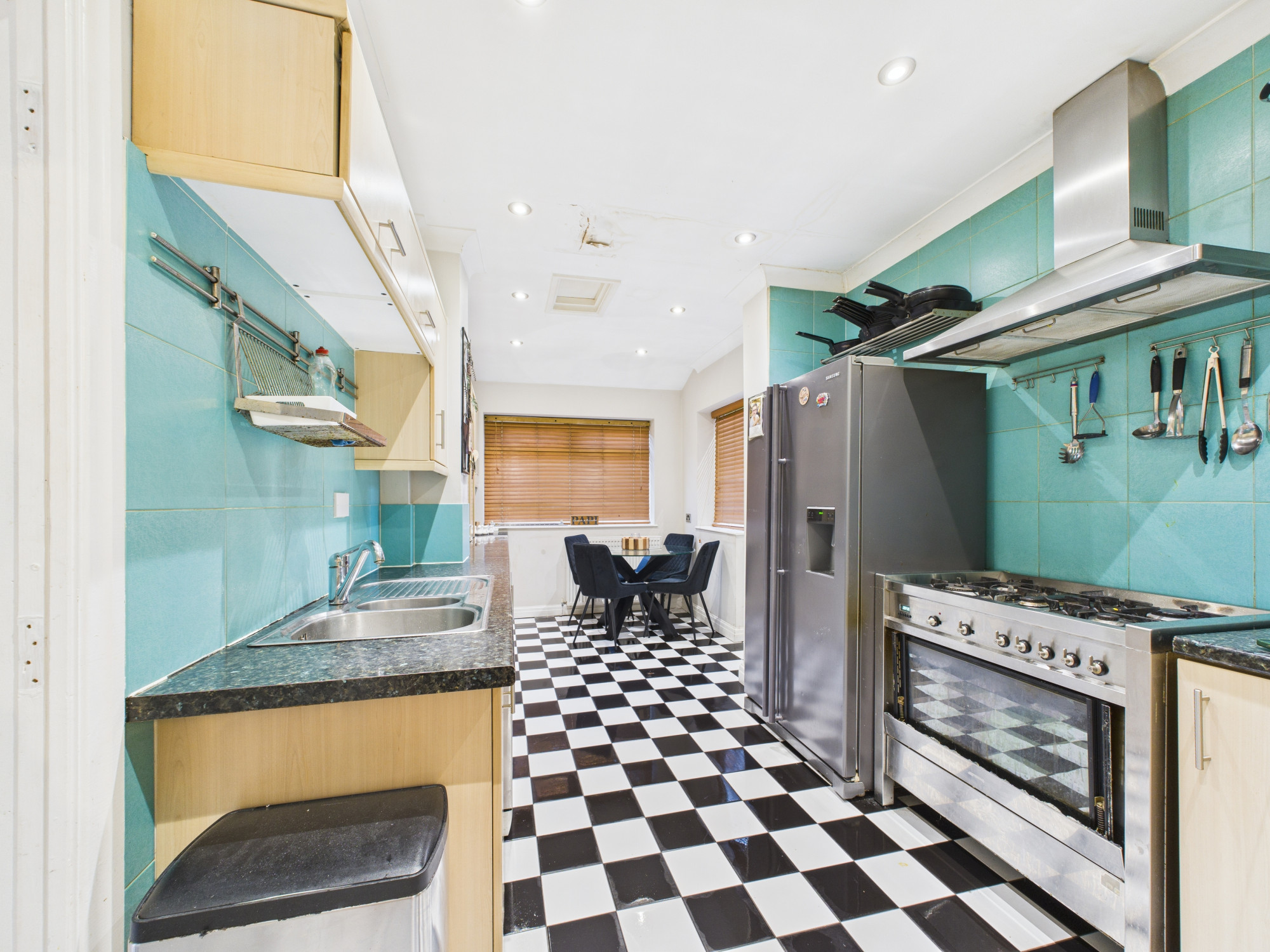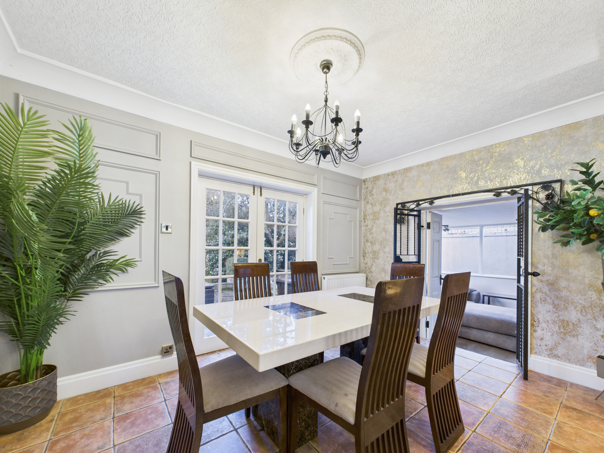 The open-plan kitchen diner provides ample storage and space for family dining and entertaining. From here, access leads into the garage conversion, which now offers a spacious and versatile additional room, complete with a separate utility areaβ€”ideal for modern family living.