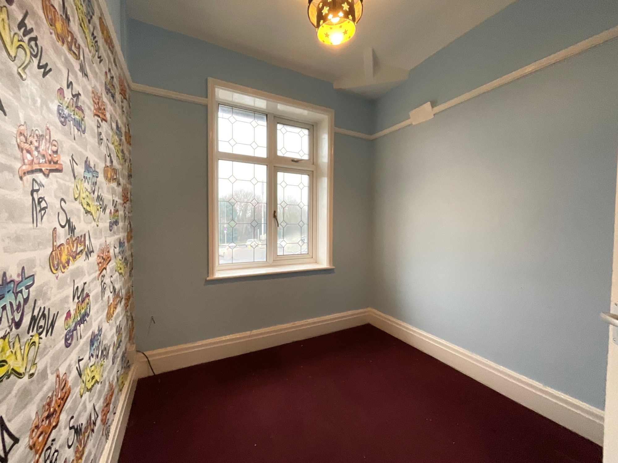 The main lounge is a comfortable and inviting space, benefitting from laminate flooring, an electric fire set within a surround, a central heating radiator and a large double glazed bay window that allows plenty of natural light to flow in. The second reception room is a generous dining room, again featuring an electric fire, central heating radiator and a double glazed bay window, making it ideal for family dining or entertaining.