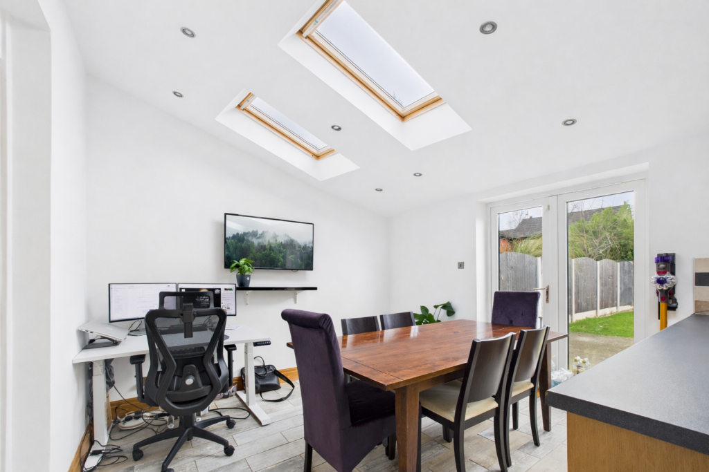 Upstairs, the property boasts two spacious double bedrooms, both benefiting from floor-to-ceiling fitted wardrobes, alongside a well-presented single bedroom. A good-sized family bathroom serves the first floor and is finished to a high standard.