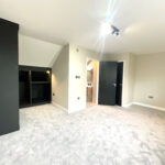 Both bathrooms are finished to a high standard with underfloor heating, LED mirrors, and gold or black fittings. The home is completed with oak internal doors, modern wall panelling, and plush grey carpets throughout.
