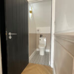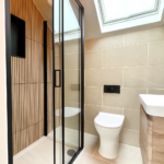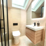 Upstairs, you’ll find two further double bedrooms, including a luxurious master suite featuring an ensuite shower room with underfloor heating, a waterfall shower, and matt black finishes. The master bedroom also boasts walk-in-styleΒ modern built-in wardrobes with LED lighting, creating a boutique hotel feel.