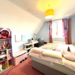 Up the split-level staircase, there are three double bedrooms, all generously proportioned and neutrally decorated, offering flexibility for family living. The modern family bathroom completes the upper floor with a stylish, well-maintained finish.