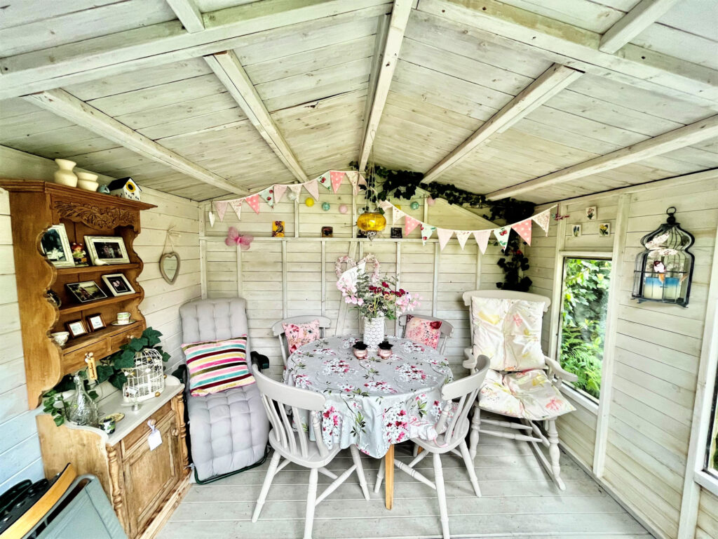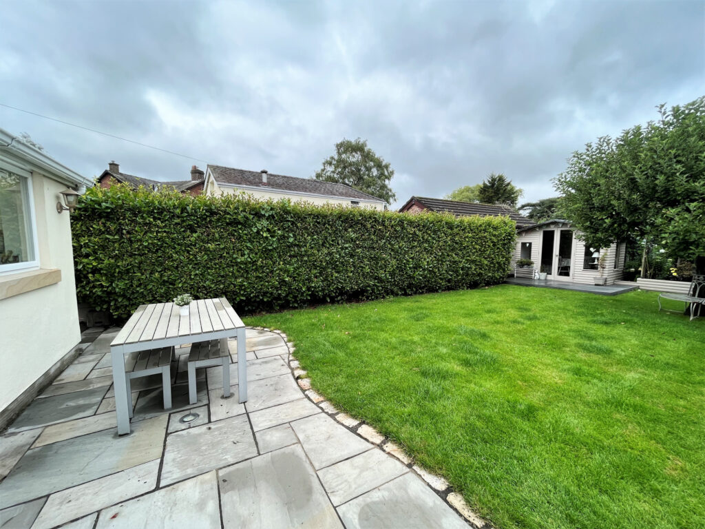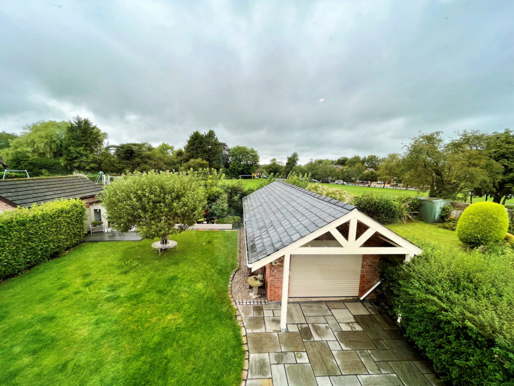 To the front of the property is a large driveway which is accessed by the sliding gate. With parking for several vehicles and access to the rear of the property and double length garage. With a lawned garden to the side with established trees and planting. The rear garden is spacious and has a large Indian stone patio, lawn with beautiful apple tree. Established raised planting area to the rear with a variety of plants and shrubbery. A decked area leads to the garden room which would be ideal for entertaining or as a play room. The detached double garage has an electric up and over door and can park two vehicles. The space is currently used as a workshop, the garage also has a WC and wash hand basin. An additional gate to the side provides access to the hidden bin storage area.