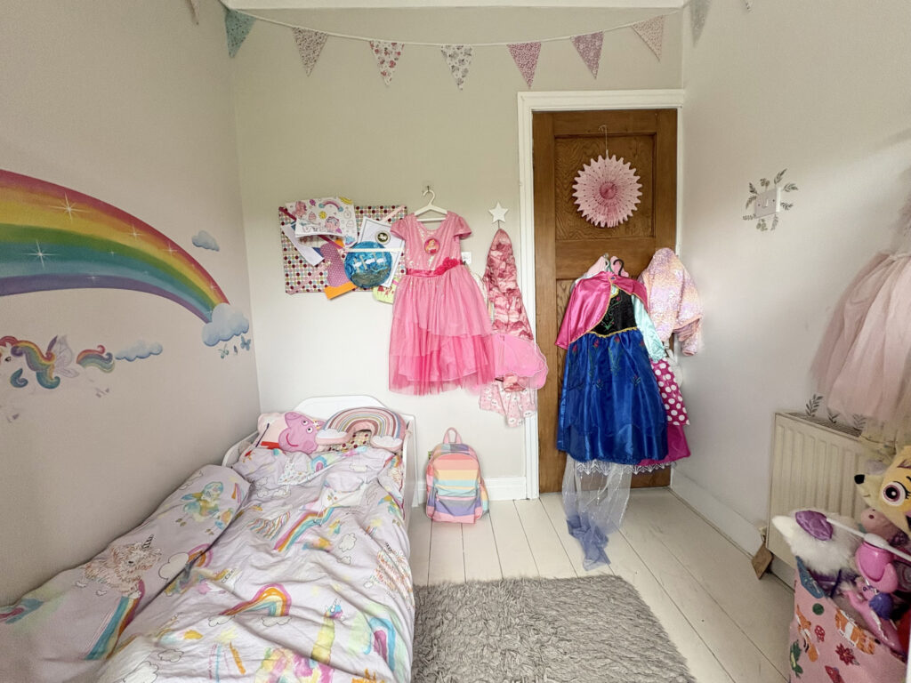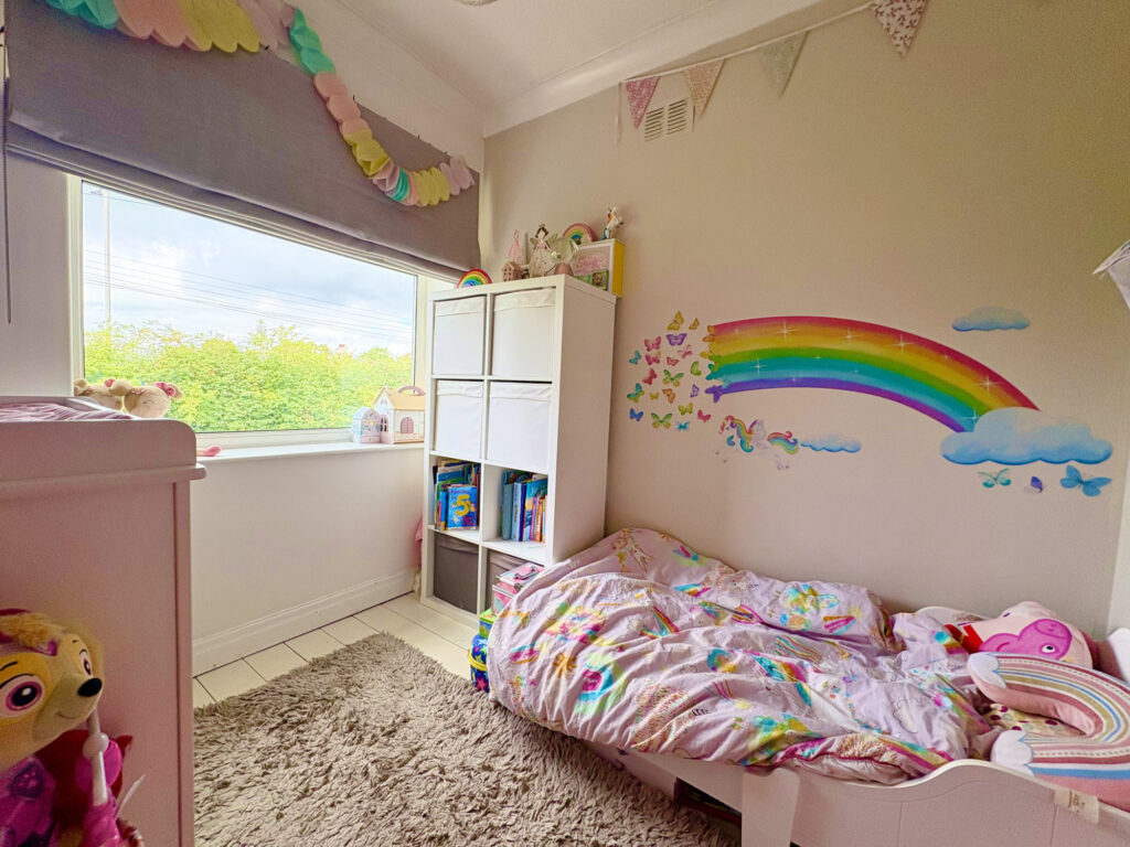 The family bathroom has been thoughtfully designed to accommodate family needs. With fully tiled floors and walls, bath with a dual shower over, WC, and wash hand basin. A frosted window allows plenty of light and a there is a heated towel rail for added convenience.
