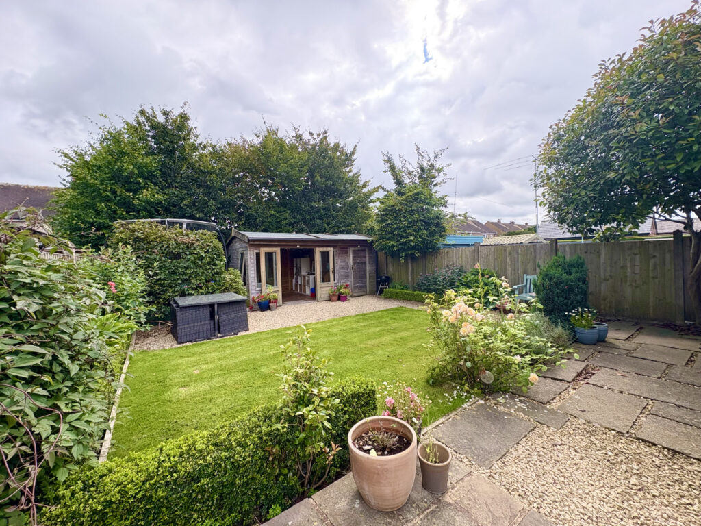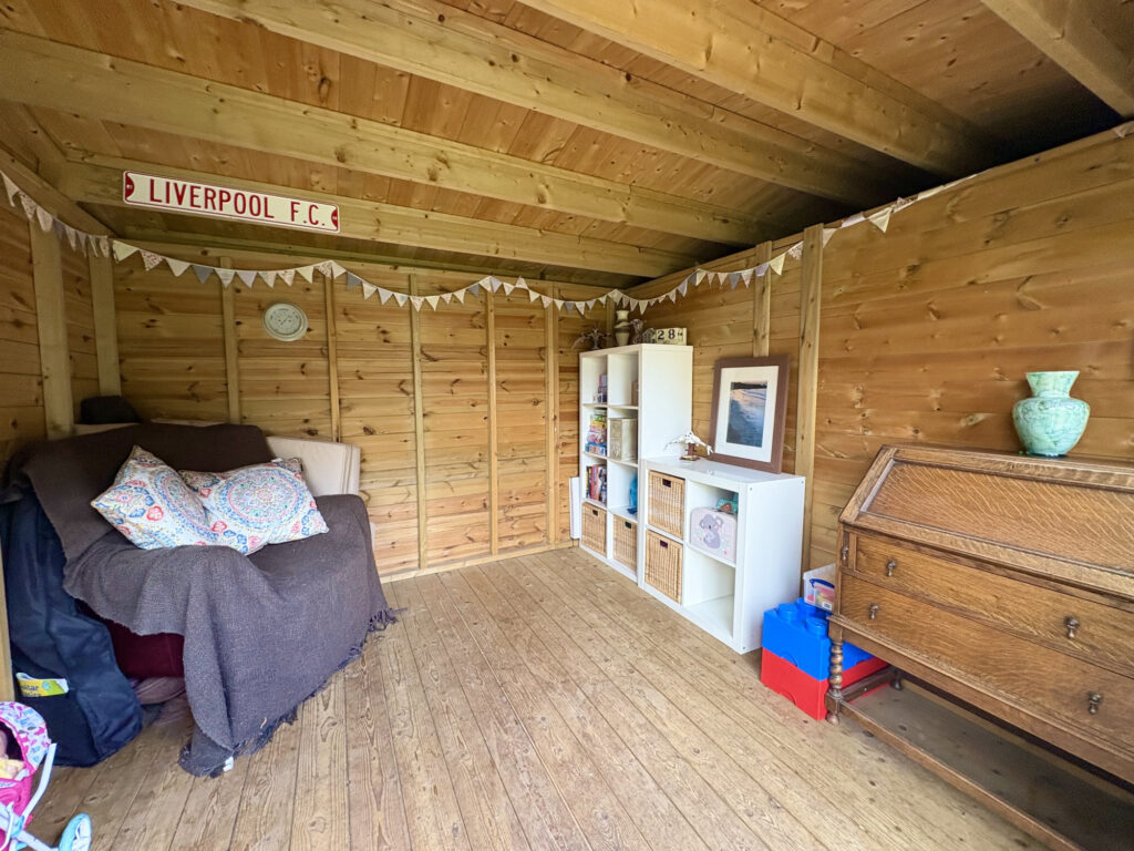 The rear garden is secure and spacious offering both patio and lawn areas ideal for relaxing and entertaining. For those with green fingers, there are established flower and shrub borders. At the bottom of the garden, you'll find a summer house and attached storage shed, the summer house is a great addition to the garden providing a versatile space for relaxing on a summers evening, children's den or home office away from the main house.