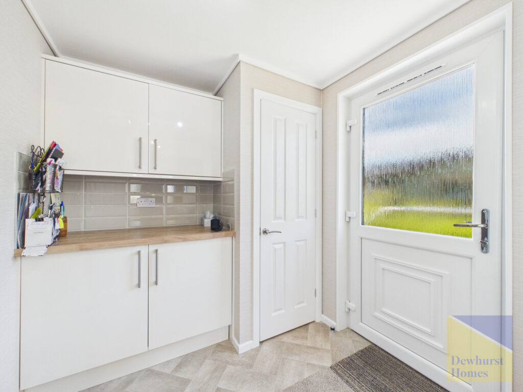 The kitchen/dining space is equally impressive, thoughtfully designed to balance functionality with style. Sleek, high-quality cabinetry is paired with integrated appliances and generous work surfaces, creating a seamless and sophisticated culinary environment. The dining area offers an inviting space for hosting, with an easy flow that supports both intimate meals and larger gatherings. A well-appointed utility room sits discreetly alongside, offering additional storage and practicality without compromising the clean aesthetic of the main space.