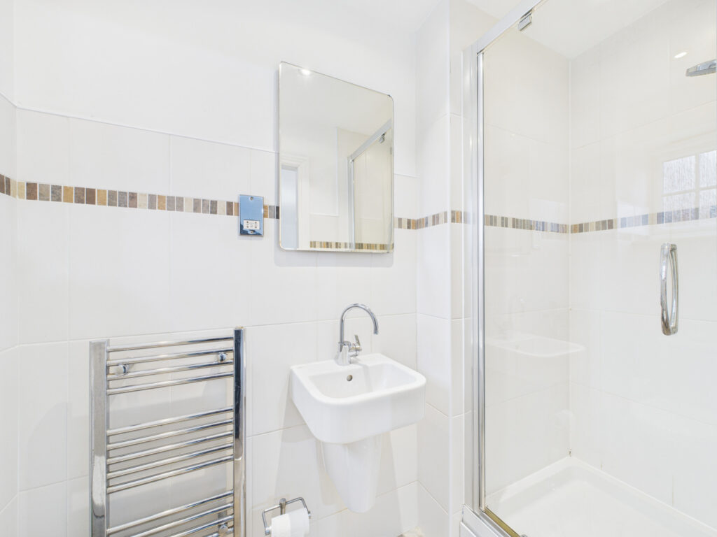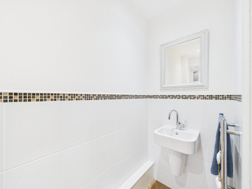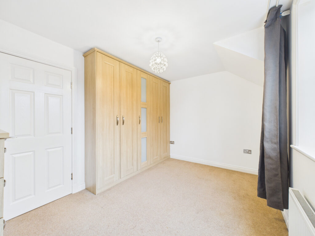 Ascend to the first floor, where a large storage cupboard on the landing adds to the property's excellent practicality. Prepare to be impressed by the spacious, L-shaped lounge, bathed in natural light from dual windows to the front, creating an inviting atmosphere for relaxation and entertaining. The private quarters on this level include Bedroom One, a generously proportioned double room. Imagine waking up and opening your own patio doors to enjoy a moment of tranquility before preparing for the day ahead in the sleek en-suite shower room. Continuing to the second floor, Bedroom Two, another inviting double, boasts fully fitted wardrobes, offering ample storage solutions. This room benefits from a good-sized en-suite, featuring a relaxing bath with a shower over, a glass screen, a modern W/C, a hand wash basin with a mixer tap, and a heated towel rail. The finishing touches of chrome fixtures and fittings, along with complimentary tiling, create a spa-like ambiance. Completing this floor is Bedroom Three, a well-appointed double room also featuring fitted wardrobes and its own modern en-suite shower room, ensuring comfort and privacy for all.