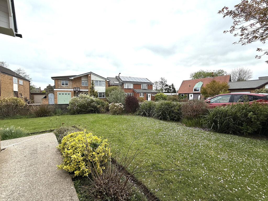 This charming residence boasts a truly remarkable outdoor space. As you approach, you’re greeted by a large landscaped garden that envelops both the front and side of the property. The low-level secure wall edge provides a sense of privacy while enhancing the overall allure of the home. Picture yourself stepping onto the lush lawn, a vibrant green canvas that invites you to relax, play, or simply enjoy the beauty of nature. The rustic borders, artfully designed, frame an array of established plants, trees, and shrubs that bring life and color to the landscape throughout the seasons. A well-maintained pathway gracefully leads you to the driveway, ultimately guiding you to the detached garage. This thoughtful layout not only adds convenience but also ensures that every step of your journey through this enchanting garden is filled with delight.