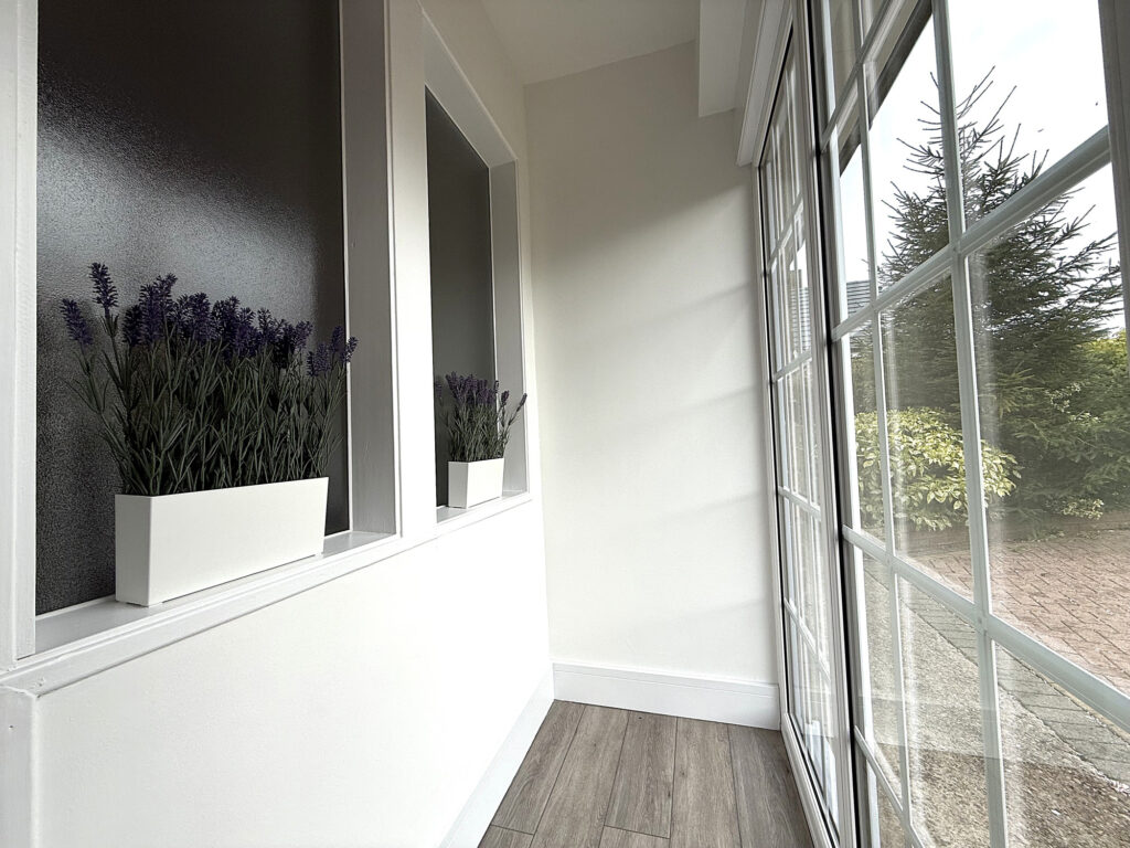 As you ascend the stairs to the first floor, you are greeted by a spacious master bedroom that offers an inviting retreat. With ample eaves storage, this room provides space for everything you may need, allowing you to keep your sanctuary organized and clutter-free. Adjacent to the master, the second bedroom is generously sized, also featuring eaves storage, ensuring that every corner of your home is utilized efficiently. The versatility of this property shines through in bedroom four, which serves as an ideal study, perfectly accommodating both work and relaxation. The bathroom is a true highlight, showcasing a beautifully designed P-shaped bath with a shower over and a glass screen, complemented by a stylish vanity unit featuring a hand wash basin and W/C. Tasteful tiling throughout adds an elegant touch, while the heated towel rail and chrome fixtures bring a modern flair. Additionally, an adaptable storage cupboard presents exciting possibilities; it can easily be transformed into a walk-in wardrobe or even an en-suite, providing you with the flexibility to customize this space to suit your lifestyle.