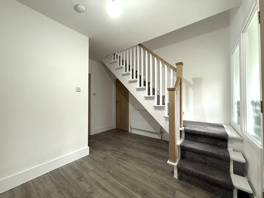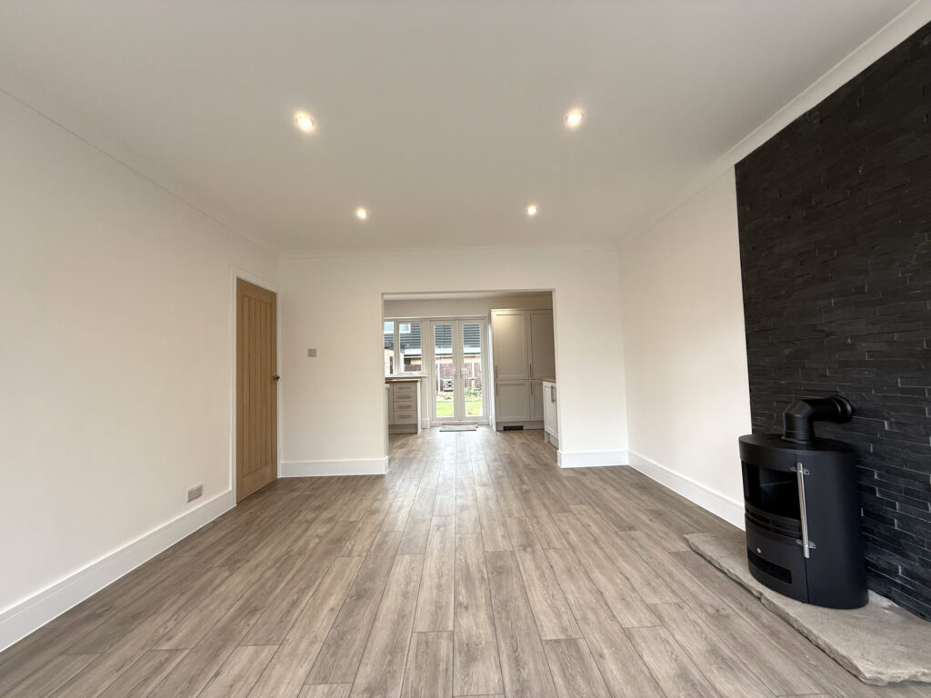 As you enter through a stylish composite front door, you are greeted by a bright and inviting porch, setting a warm tone for the rest of the home. Stepping into the spacious hallway, you will find convenient access to all ground floor rooms, making everyday living a breeze. The thoughtfully designed storage options ensure that your home remains organized and clutter-free. A beautiful staircase leads you to the first floor, where additional living space awaits. The family-sized lounge is bathed in natural light, thanks to its dual aspect windows that create an airy ambiance, perfect for relaxing or entertaining. The modern, quality-fitted kitchen features integrated appliances that blend seamlessly into the design, making it a joy to prepare meals. The patio doors open up to the rear garden, inviting you to enjoy outdoor living at its finest. The open-plan family room boasts a large bay window that floods the space with light, while a feature burning stove adds a cozy touch, making it an ideal spot for family gatherings or quiet evenings in. A well-appointed utility room offers under-counter space for a washing machine and tumble dryer, ensuring practicality and ease in your daily routine. Completing the ground floor is a thoughtfully designed w/c featuring a space-saving sink and convenient storage underneath. Additionally, the flexible home office or third bedroom provides the perfect solution for remote work or accommodating guests.