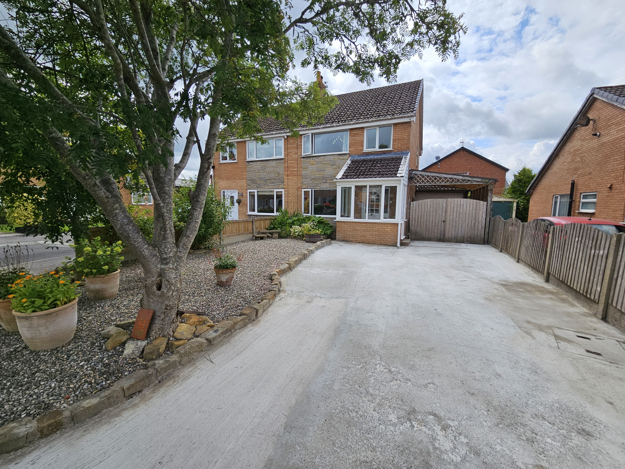 We are always delighted when weΒ get the opportunity to market a property inΒ GoosnarghΒ and this is certainly no exception. Located on a quiet culΒ de sacΒ and within walking distance of the local amenities and being only a short drive to motorway access this fabulous home will without doubt is one to consider.Β From a spacious comfortableΒ lounge with aΒ cosy open fire to an extended open plan quality kitchen that overlooks a stunningΒ garden, the property has a welcoming homely feel suitable for professional couples or families. The property briefly comprises; Entrance porch, hallway, lounge and extended open plan dining kitchen. To the first floor are three bedrooms and family bathroom. Externally to the front the driveway providesΒ ample parking whilstΒ a low maintenance gravelled garden is home to aΒ mature tree and planted shrubs. Double gates lead through to a sizableΒ covered car port and furtherΒ onto a garage having light, power, plumbed for washing machine and plenty of overhead storage. To the rear the south facingΒ enclosed garden is an absolute delight. Having a profusion of remarkable plants thoughtfully placed creatingΒ privacy and seclusion, this patio garden is a truly special place and is absolutely perfect for entertaining. We highlyΒ recommendΒ earlyΒ viewing.