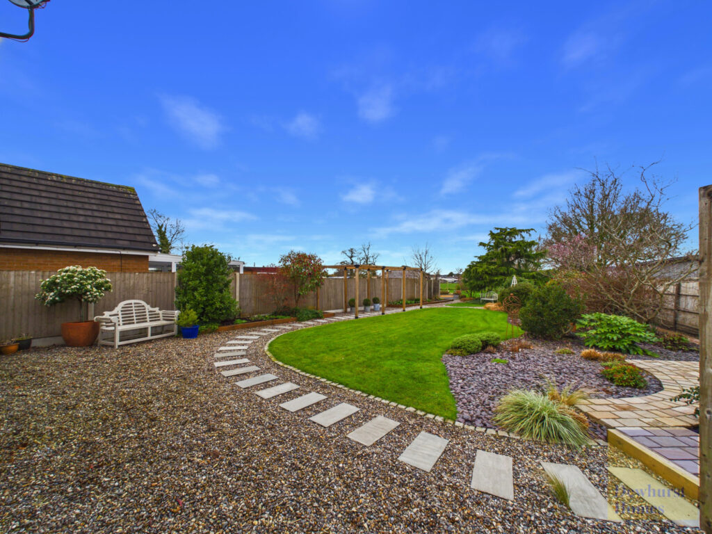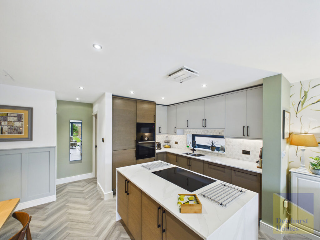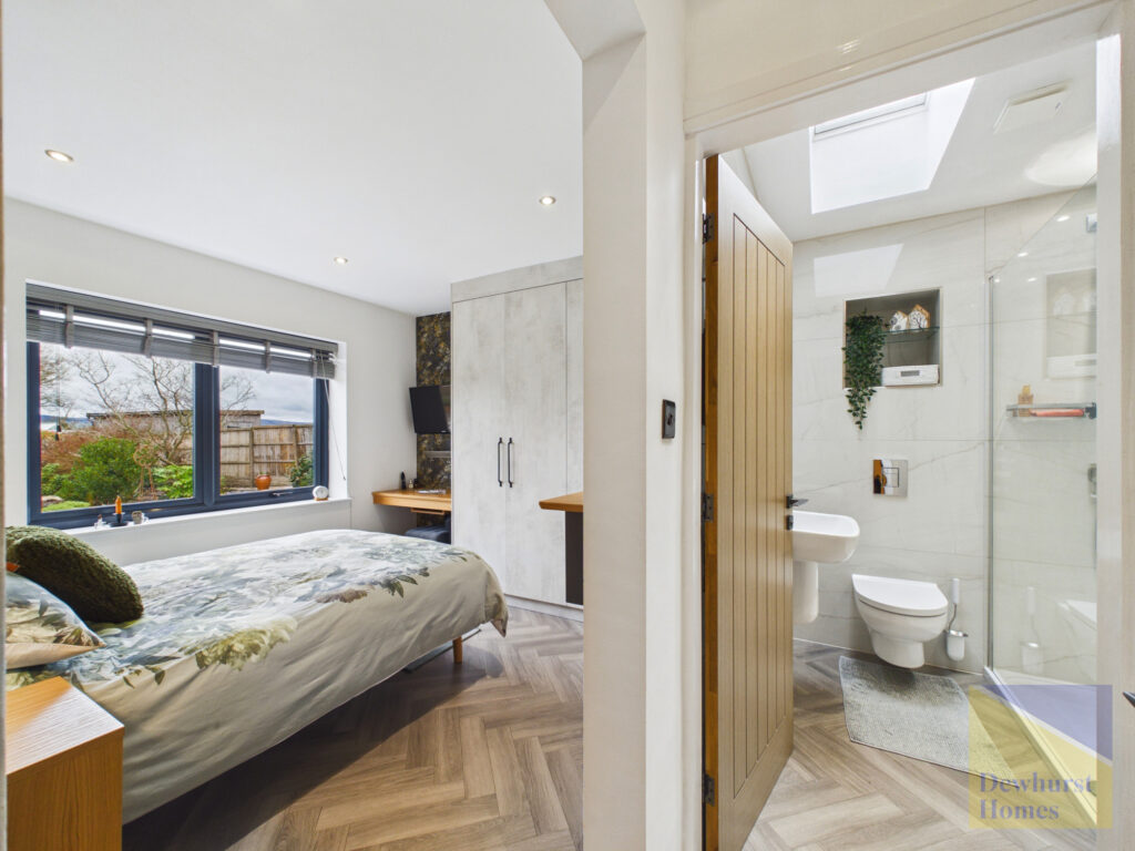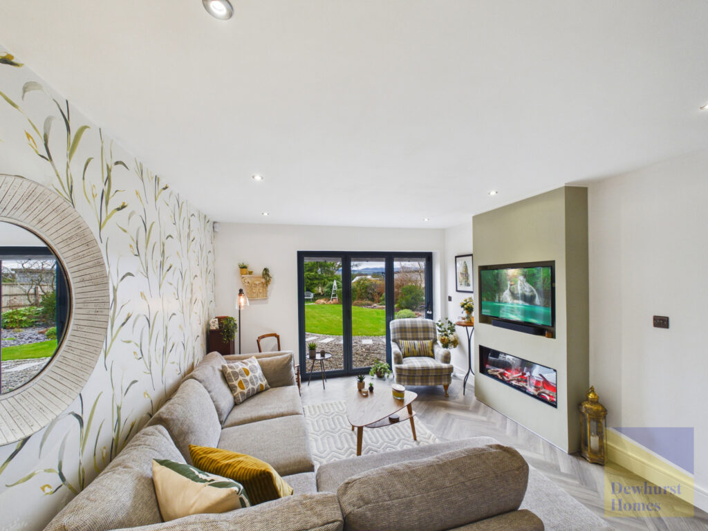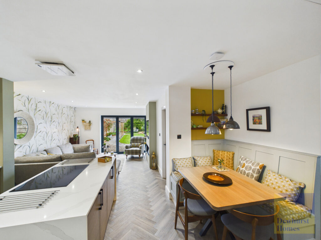 Inside, the home has been thoughtfully redesigned to create a bright and spacious open-plan living area, seamlessly combining the kitchen, dining space, and lounge. This welcoming hub of the home is perfect for everyday living and entertaining. The modern kitchen is well appointed with quality fittings and ample storage. The bungalow benefits from underfloor heating throughout, providing comfort and energy efficiency across all rooms.
