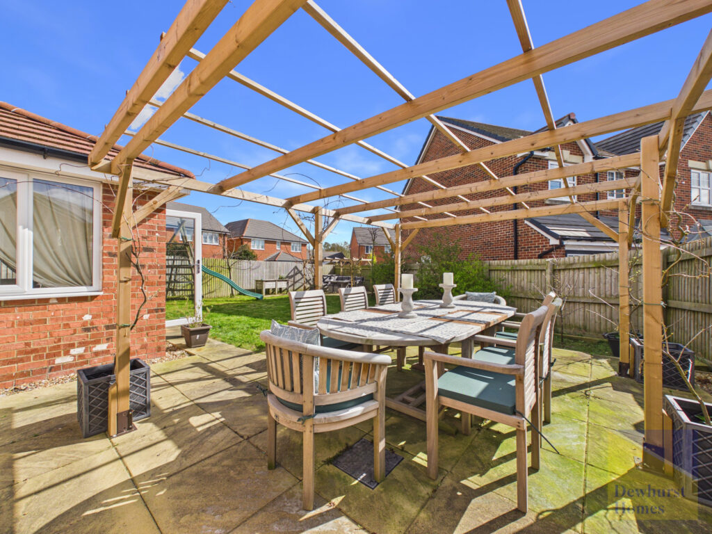 Externally, the property continues to impress. The south-facing rear garden is a standout feature — designed to make the most of its sunny aspect. With two separate patio areas, both enhanced by pergolas, the space is perfectly suited for outdoor dining, entertaining, or simply unwinding in a private and peaceful setting. The garden also offers plenty of room for children to play or for keen gardeners to personalise.
