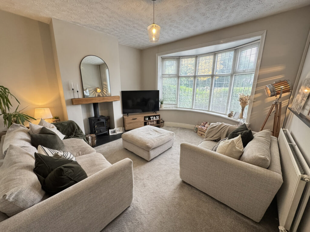 The ground floor offers a welcoming entrance hallway with recently laid flooring, a spacious lounge featuring a charming bay window and a cosy log burner, perfect for relaxing evenings and a large kitchen diner. To the first floor, you’ll find three bedrooms and a modern family bathroom.