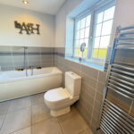 To the first floor are five generously sized double bedrooms, two of which benefit from en-suite facilities. The primary bedroom features a dressing area and a stylish four-piece en-suite bathroom, while bedroom two enjoys a three-piece en-suite. Three further double bedrooms are served by a contemporary four-piece family bathroom, completing the first-floor accommodation.