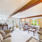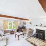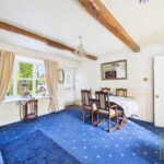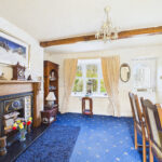 The elegant dual-aspect living room is a generous and welcoming space, complete with exposed beams, a feature fireplace and glazed double doors leading through to the kitchen, creating a wonderful flow for everyday living and entertaining. A spacious dining room, which also serves well as a second reception room, offers further versatility and charm with its exposed beams, character fireplace, front-facing window and external door.