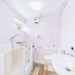 A large utility room provides extensive storage, a 1Β½ bowl sink, space for laundry appliances and a stable door opening to the garden. From here, a sliding door leads to a contemporary bathroom with walk in bath.
