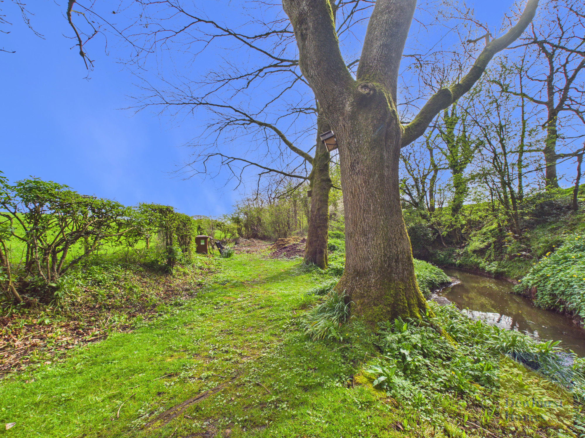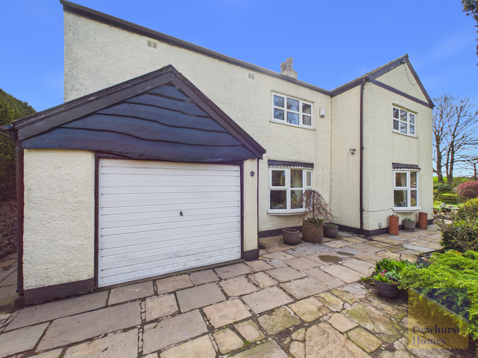 Outside, the property enjoys a generous tended plot, with mature gardens providing colour and interest throughout the seasons. A peaceful stream borders the grounds, adding to the sense of tranquillity, while a well-sized patio area offers an ideal setting for outdoor dining and relaxation. The home is approached via a private driveway with ample parking for several vehicles, complemented by a garage that further enhances the practicality of this charming country residence.