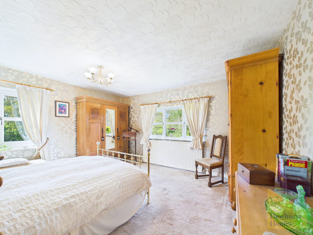 Three well-proportioned bedrooms, including a generous principal bedroom and a second double bedroom both enjoying superb countryside views. A modern shower room with a double walk-in enclosure completes the upper floor.