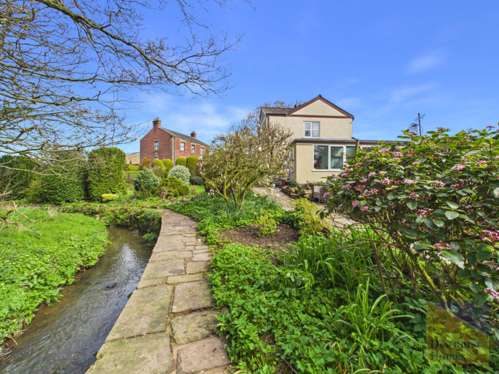 Outside, the property enjoys a generous tended plot, with mature gardens providing colour and interest throughout the seasons. A peaceful stream borders the grounds, adding to the sense of tranquillity, while a well-sized patio area offers an ideal setting for outdoor dining and relaxation. The home is approached via a private driveway with ample parking for several vehicles, complemented by a garage that further enhances the practicality of this charming country residence.