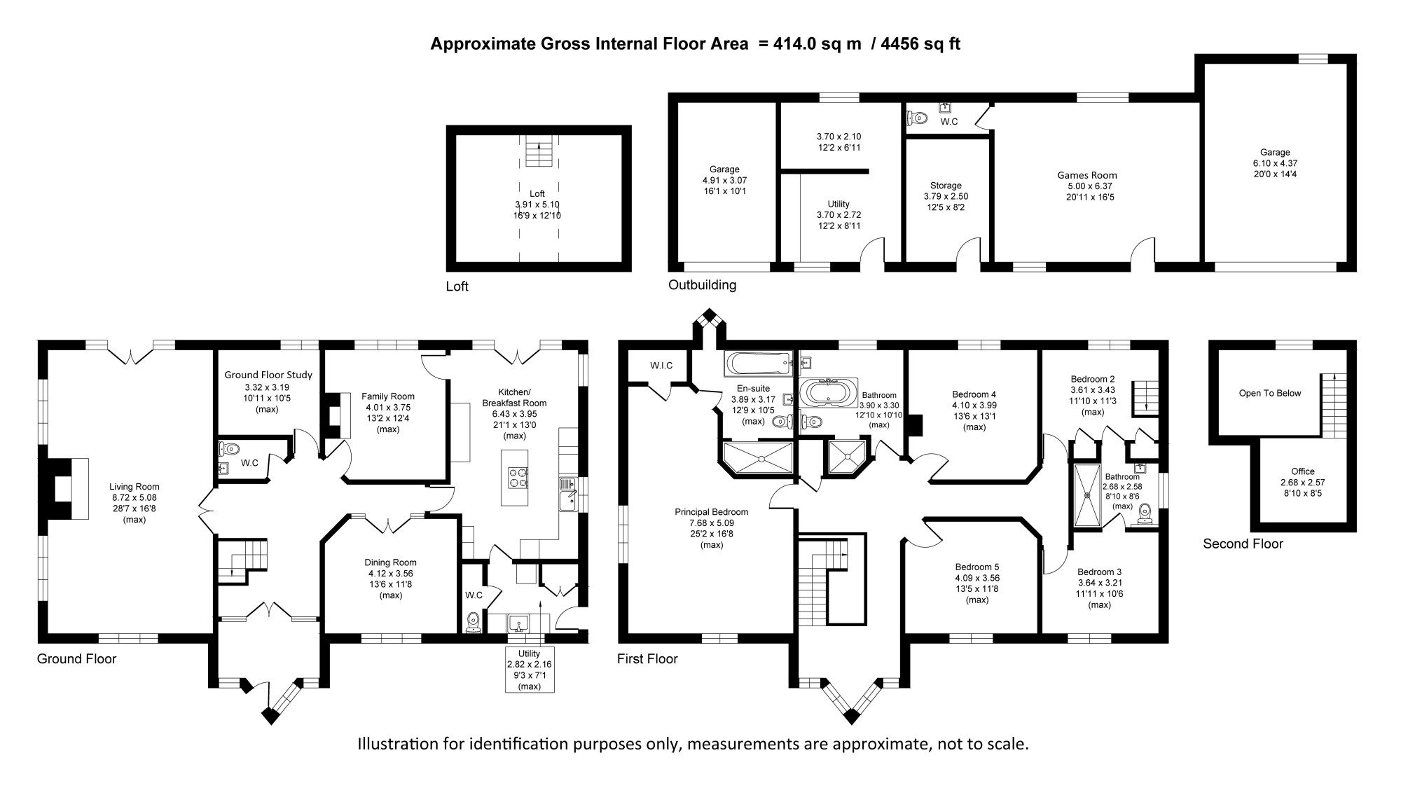 At the heart of the property is the spacious formal lounge with open fire,Β open-plan kitchen and living area, complemented by additional reception rooms ideal for entertaining and modern family life. The five bedrooms are generously proportioned, with the principal suite enjoying en-suite facilities and views over the grounds to open countryside.