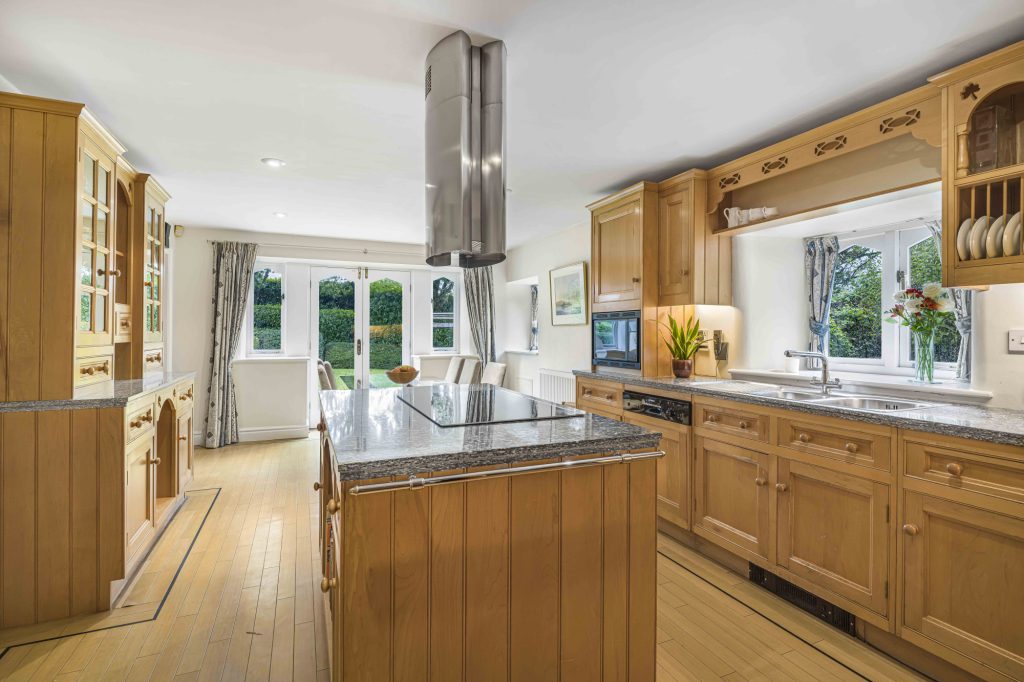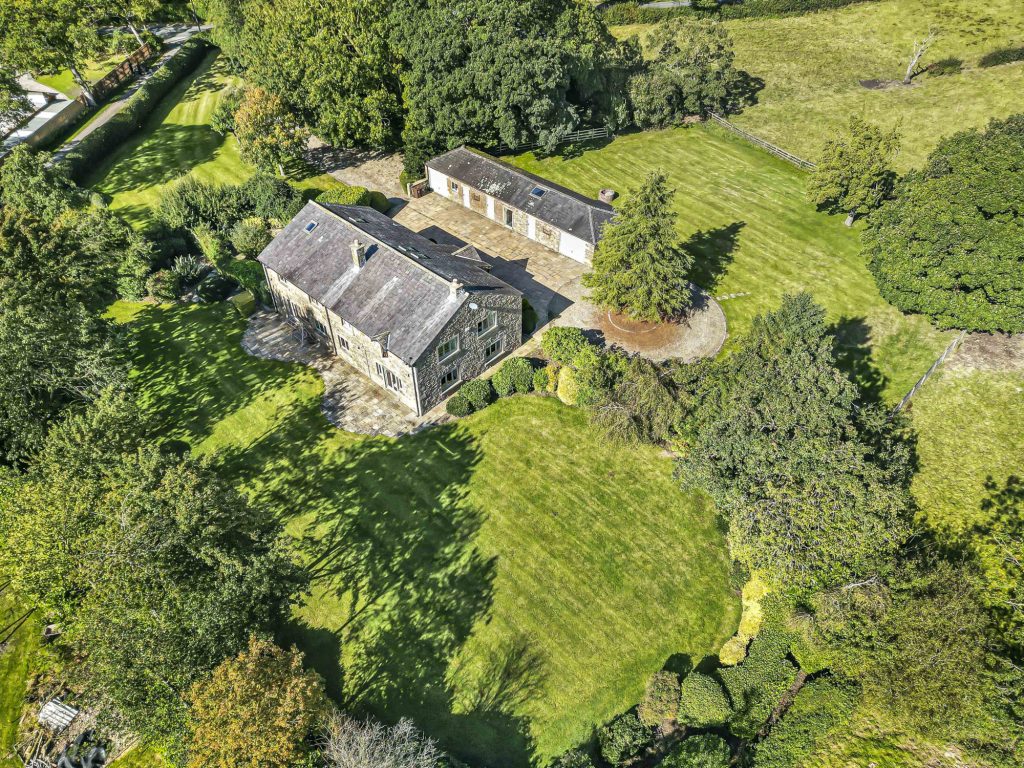 At the heart of the property is the spacious formal lounge with open fire, open-plan kitchen and living area, complemented by additional reception rooms ideal for entertaining and modern family life. The five bedrooms are generously proportioned, with the principal suite enjoying en-suite facilities and views over the grounds to open countryside.