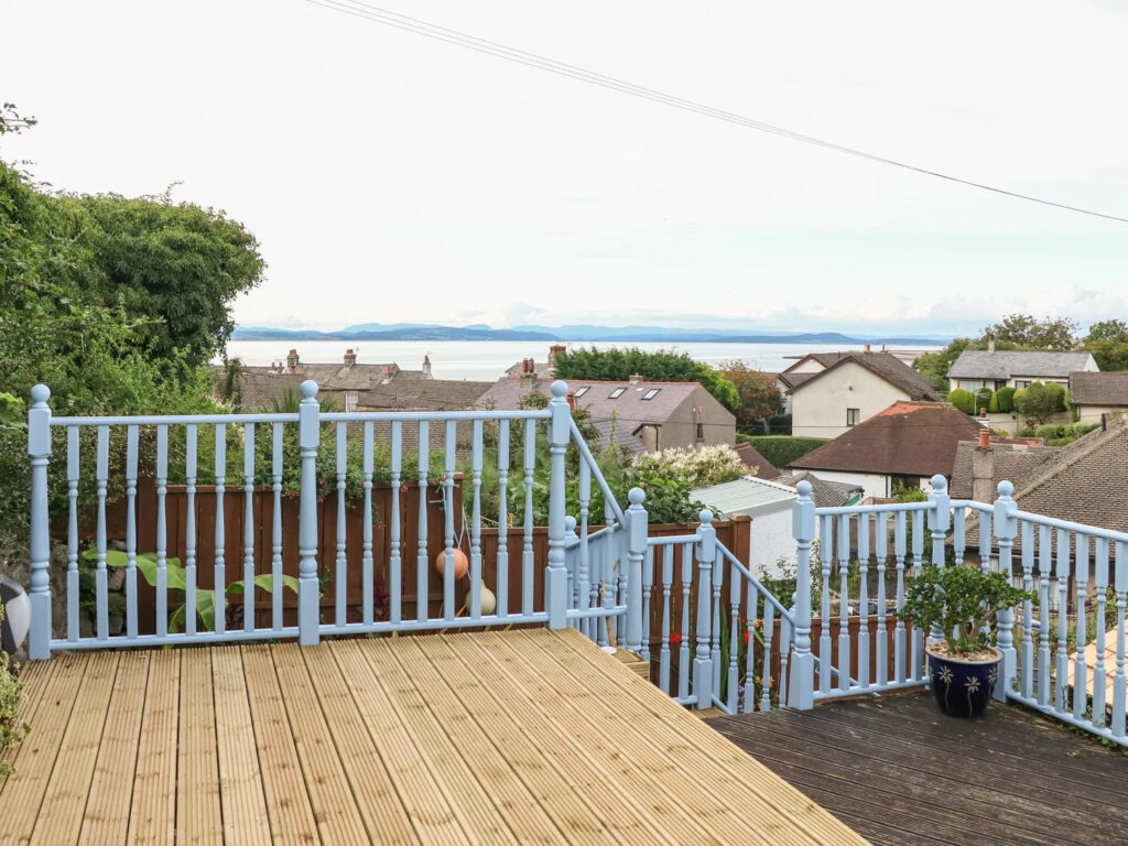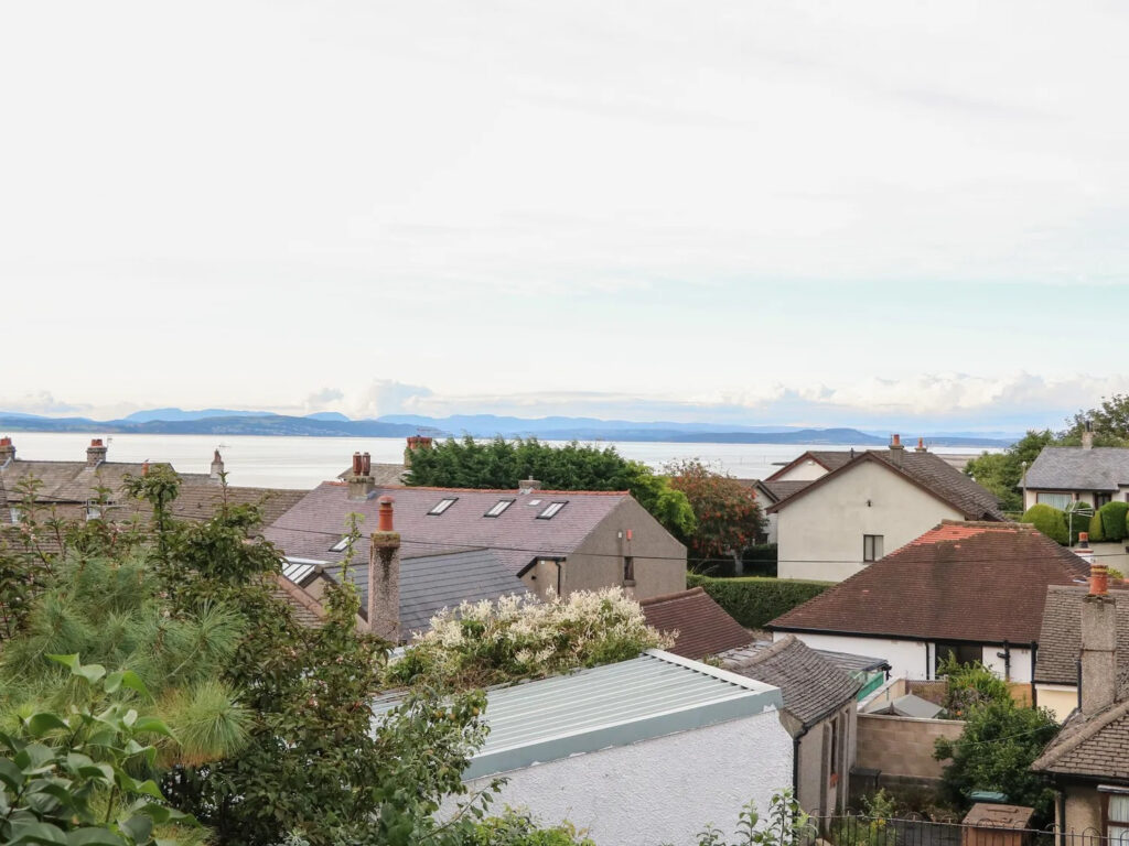 The beautiful garden is set over two levels, the lower patio dining and BBQ area, incorporating stone borders and established plants, a small storage out building and outside water supply. A stairway leads to a bespoke double level balconied decking area with truly stunning views across Morecambe Bay to Grange-Over-Sands and the Lake District in the day, eclipsed only by the amazing sunsets in the evening.