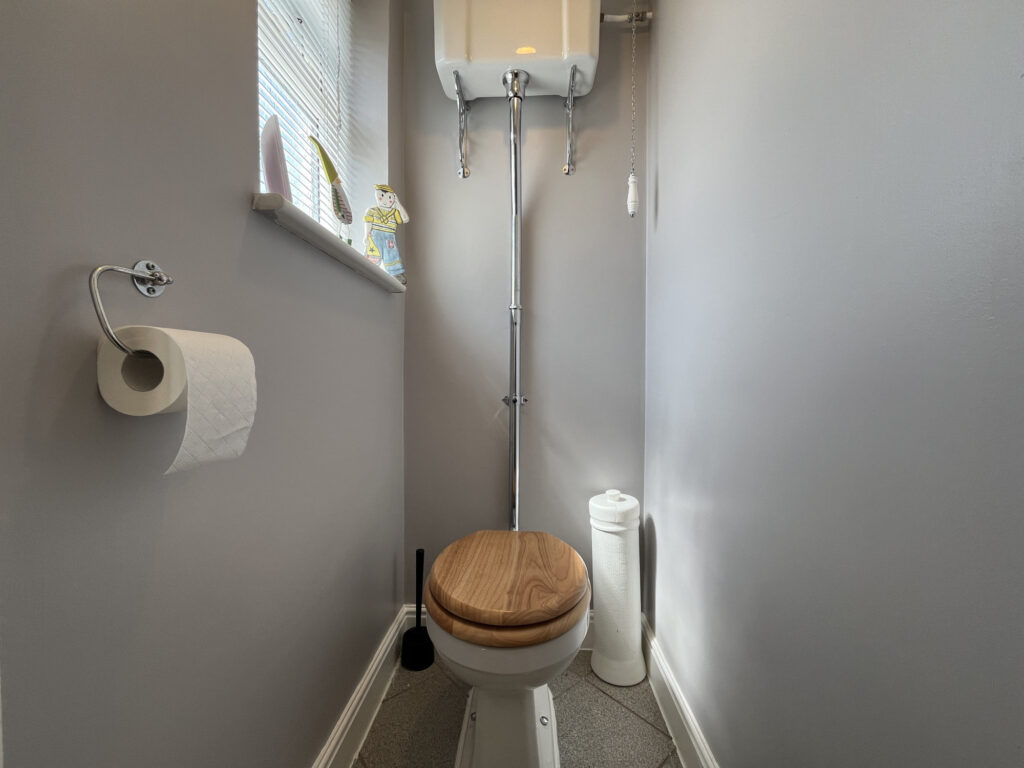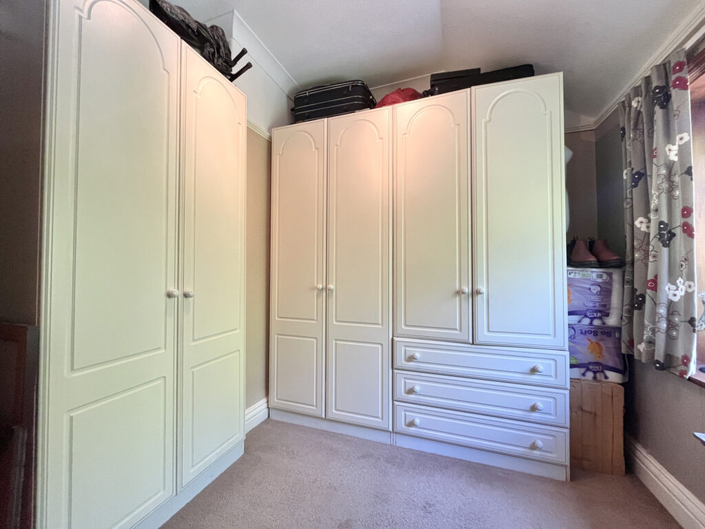 Upstairs, the home offers three bedrooms — two spacious doubles and a comfortable single — ideal for a growing family or those needing a home office. The well-appointed family bathroom includes a bath with an overhead shower and built-in storage, ensuring functionality without compromising on style.